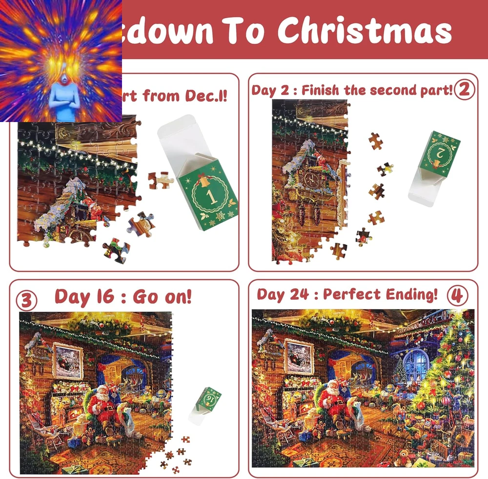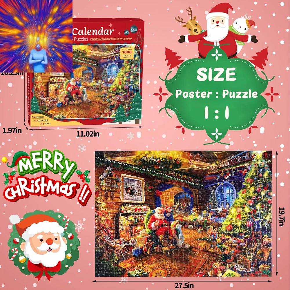 Store New Arrivals Add to Favorite View Feedback Contact Puzzle Advent Calendar 2024 Christmas Puzzle for Kids Adults - Santa'S Workshop 24 Boxes 1008 Pieces Advent Puzzle Countdown to Christmas Gifts for Boys Girls Christmas Decorations(27.56" X 19.69") Description Color Santa's Workshop Material Paper Material Type Paper Manufacturer Part Number KP-02 Item Weight 0.317 ounces Age Range (Description) Adult, Teen, Kid Product Dimensions 27.56"L x 19.69"W đ ăAdvent Calendar Puzzle Countdown to Christmasă-- This advent calendar 2024 adult and kids puzzle contains 24 numbered boxes to open on the day that corresponds to the number. The inside of each box have 42 pieces puzzles, which belong to the part of the whole 1008-piece jigsaw puzzle. The goal is to finish one section of the christmas puzzles every day between December 1 - 24 and countdown to Christmas day. Perfect advent calendar 2024 kids adults teens. đ ăSanta's Workshop is Comingă-- This christmas advent calendar puzzle is included 24 captivating Christmas-themed posters features Santa Claus is sitting on the couch enjoyable. There are many worker are working there. Fireplace, Christmas Tree, Sleigh, Christmas Presents & Stockings, Animals all is here. It shows a warm, happy and auspicious Christmas atmosphere. Christmas puzzle advent calendar for adults and kids arousing anticipation and excitement for the upcoming Christmas festivities. Finished size are: 70*50cm/27.56" x 19.69". (Come with 1:1 puzzle poster for reference) đ ăAdvent Puzzle Calendar 2024 for All Agesă-- Unique design advent puzzle, knowing which pieces belong to which section makes this kids and adult advent calendar puzzle a bit easier than other christmas puzzles 1000 pieces. So this best advent calendars puzzle set is suitable for more ages people. This advent calendar puzzle promises to give puzzle fans a lot of enjoyment and satisfaction, whether you're an expert puzzler searching for a difficult task or a beginner wishing to start on a fun puzzle-solving adventure. Great christmas gifts for kids and adults. đ§©ăPremium Quality Advent Calendar Jigsaw Puzzle ă-- Made of 1008 pieces high quality recycled cardboard, sturdy and bend-resistant. Special surface film treatment, color remains freshness after long time storage. Each puzzle piece is precision cutting to ensure a tight fit between pieces, burr-free edge and almost no dust,bring you a satisfying and visually appealing experience. Good puzzles for adults advent calendar 2024 boys girls women men. đăSurpise Christmas Gift Or Home Decoră--With an exquisite box, this jigsaw puzzle advent calendar 2024 can be a perfect gift for kids teens adult on Christmas. After you finished the puzzles, you can frame it and hang it on the wall to decorate your home, make your home more beautiful and warm! Play this kids advent calendar 2024 christmas puzzles for adults kids with your familys and welcome to christmas! đăPackage Lists & MISSING PIECE SUPPORTă-- 1008 Piece Christmas Puzzle Advent Calendar (24 Little Boxes Pack In Beautiful Gift Package ), 1* 1: 1 Poster for Refer Puzzle, Puzzle Finished Size: L x W=27.6 in x 19.7 in Package Size: 11.1 in x 10.2 in x 2 in . MISSING PIECE NO WORRY: Please don't worry about the missing piece, if the christmas puzzle advent calendar you received has any problem, please MAIL us at once, we will help you to solve the problem ASAP. Product Description KWYZ Advent Calendar 2024 Jigsaw Puzzle for Adult Kids -- Let's Countdown to Christmas Together This is a 1008 Piece christmas puzzles for adults and kids has 24 boxes puzzle and you finish 1 part everyday to countdown to christmas. We called it Christmas Advent Calendar Puzzle. On Dec. 24, you will get a complete picture which featuring Santa Claus is sitting on the couch enjoyable. There are many worker are working there. Fireplace, Christmas Tree, Sleigh, Christmas Presents & Stockings, Animals all is here. It shows a warm, happy and auspicious Christmas atmosphere. Just look at here, our advent calendar puzzle 2024 with packed in a beautiful gift box and 24 little boxes are waiting for you! Our advent calendar 2024 christmas puzzle are made of thick cardboard with very little puzzle dust, carefully designed with meticulous attention to detail and constructed from durable materials. Special surface film treatment, color remains freshness after long time storage. With perfect adhesion, the puzzle advent calendar pieces seamlessly lock into place, creating a sturdy and satisfying completion. The smooth fit and exceptional quality elevate the overall puzzle experience, providing hours of puzzling enjoy for both kids and adults. Advent calendar for girls, kids advent calendar 2024 girls boys. Our advent puzzle are in rich color and all the puzzle pieces are in different shapes. It will be much more interesting for playing with. Also come with 1:1 clear puzzle poster for you to finish the puzzle. Perfect adult advent calendar advent calendar for teens kids. Christmas Advent Calendar 2024, Use this Christmas Puzzle 1008 Piece 24 Parts Countdown to Christmas with Your Kids Countdown to Christmas day is a very exciting thing. You can play and put the puzzle together with your child via this advent calendar christmas puzzle. It can give you more opportunities to communicate with and enchance the relationship to your kids, and also keeps you do something fun and relaxing to do each day leading up to Christmas. After you finish it on the christmas eve, don't forget to hang it on your home for christmas decoration. Unique Christmas Gifts for Teens Kids Adults - Fun Christmas Advent Calendar 2024 - An Educational Activities for Countdown To Christmas! KWYZ Christmas puzzle advent calendar not only provide entertainment for the whole family, also offers educational benefits. It's not just puzzles for adults, but meaningful advent calendar for kids, teen advent calendar 2024. Each puzzle contains varying levels of difficulty, 