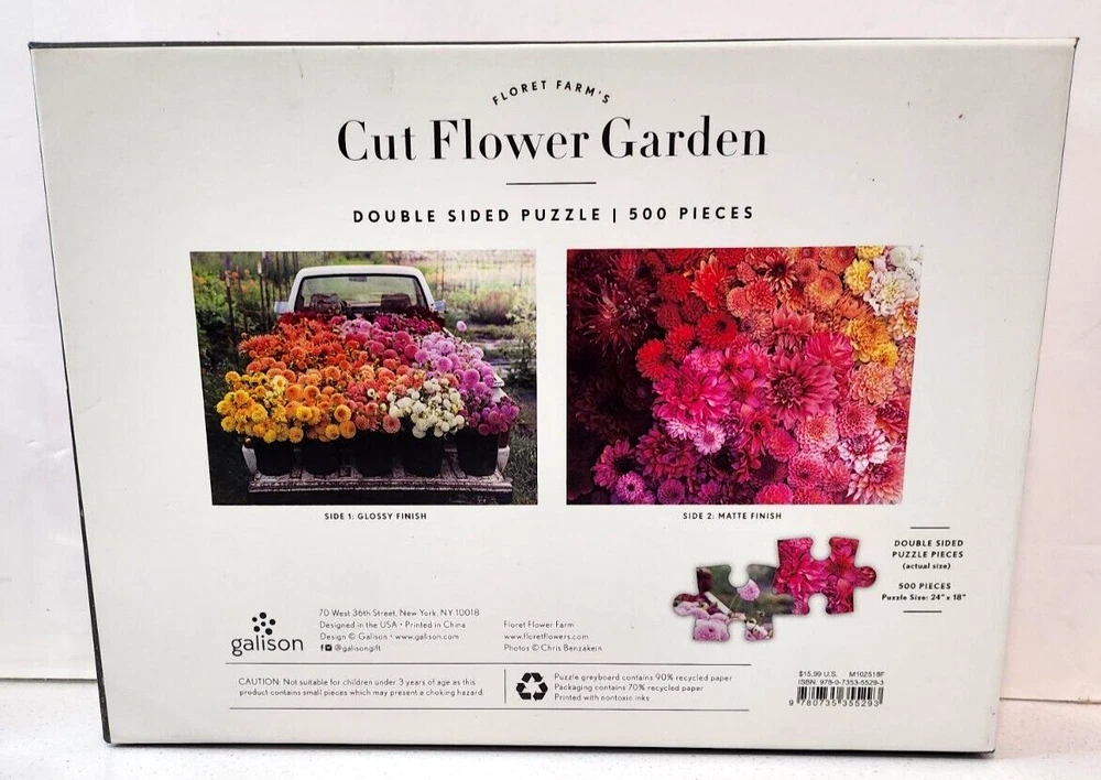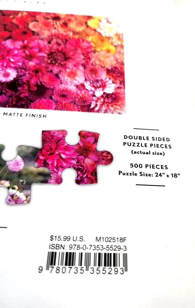 Puzzle, "Cut Flower Garden" Double Sided Puzzle, 500 Pieces, 24" x 18", New