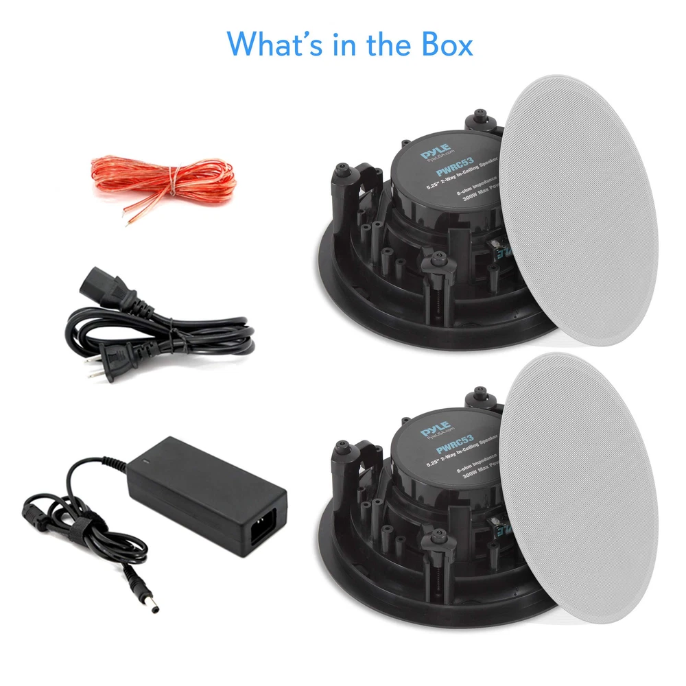 Pyle 6.5” Ceiling Wall Dual Speakers - 2-Way Full Range Stereo Sound (Pair) Universal Flush Mount Design w/ 70Hz - 20kHz Frequency Response 480 Power Watts Peak & 2 Magnetic Speaker Grills PWRC63 6.5” 2-WAY SPEAKER: Pyle 6.5” ceiling wall speaker produces 2-way full range stereo sound. The product is made environmentally friendly ABS construction perfect to any room without cluttering floor space. This type of speaker is a passive speaker FLUSH MOUNT DESIGN: A universal pair of flush mount design for any flat surface, in-wall or in-ceiling installation. The product includes cut-out dimension 7.9” in diameter and 2.95” in mounting depth for quick and easy installation 70Hz - 20kHz FREQUENCY RESPONSE: Pyle 8” speaker system has a 1/2” high compliance polymer tweeters and frequency response. This flush mount speaker is pack with exceptional 8 ohm impedance rating and impressive 480 watts power handling capability 480 WATTS PEAK: Pyle in-wall speaker system were carefully combined to reproduce sound clearly with outstanding responsiveness. It is made polypropylene cone with rubber edge perfect for custom audio applications used for home, office and business 2 MAGNETIC GRILLS: The speaker has 2 convenient magnetic speaker grill and integrated clamp-type mounting brackets for quick attachment. It is a flat and thin, slim-style removable speaker grill for quick detachment and mountable in any flat surface