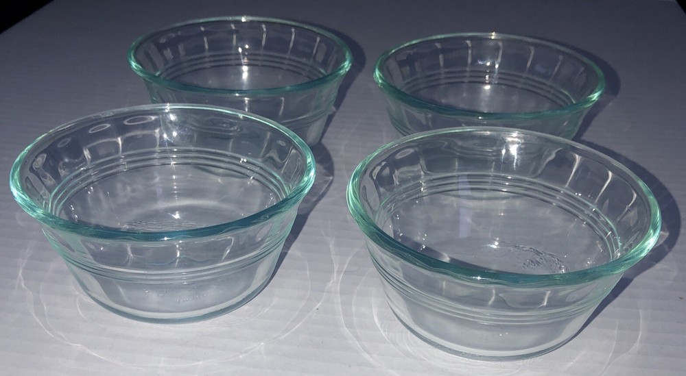 Pyrex 6 oz scalloped rim custard cups set of 4 glass ramekins