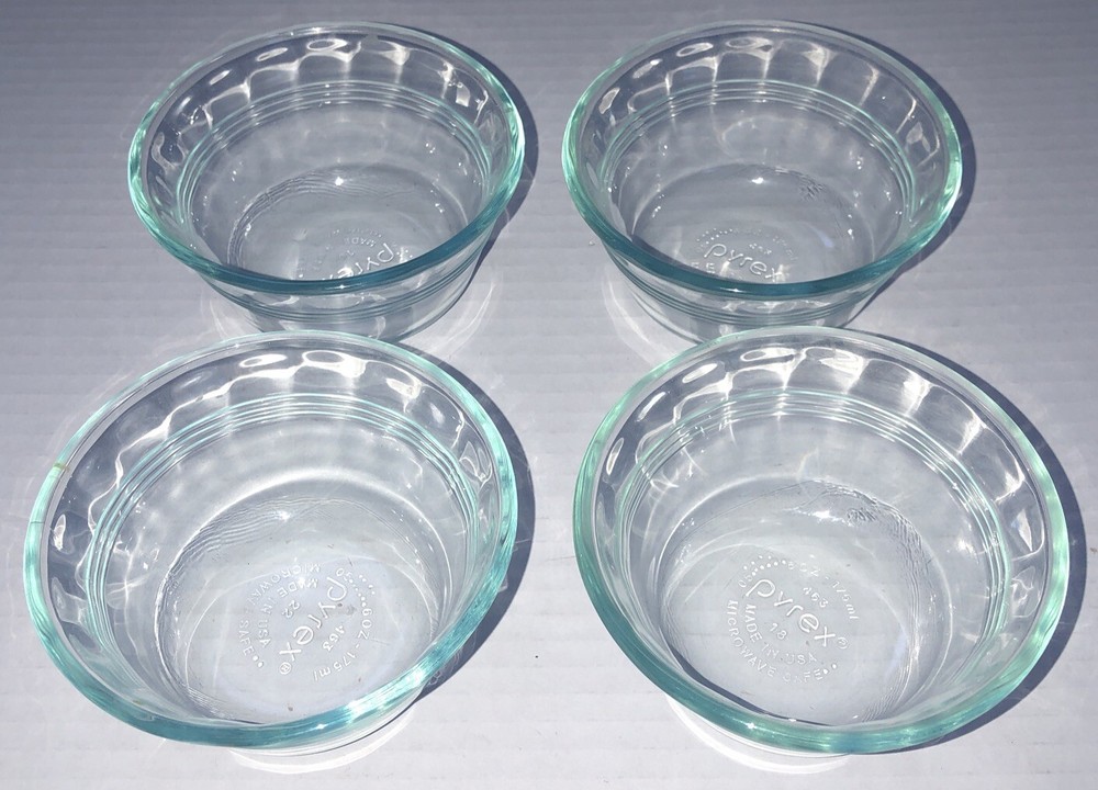 Production Style:N/AOccasion:All OccasionsItem Weight:N/AGlassware Type:PYREXItem Diameter:4”gtin13:Does not applyEra:Late 20th Century (1970-1999)Shape:RoundBrand:PYREXFinish:GlossyItem Depth:N/AManufacturer Warranty:NoneColor:ClearType:BowlMaterial:GlassOriginal/Reproduction:Vintage OriginalHandmade:NoProduction Technique:Fused GlassCountry/Region of Manufacture:United StatesFeatures:Dishwasher Safe, Microwave Safe, Oven SafeNumber of Items in Set:Four-PieceMPN:463UPC:Does not applyItem Length:N/ASet Includes:4 BowlsVintage:YesBackstamp:ImpressedModel:463Type of Glass:PyrexItem Height:2"Original/Licensed Reproduction:Original