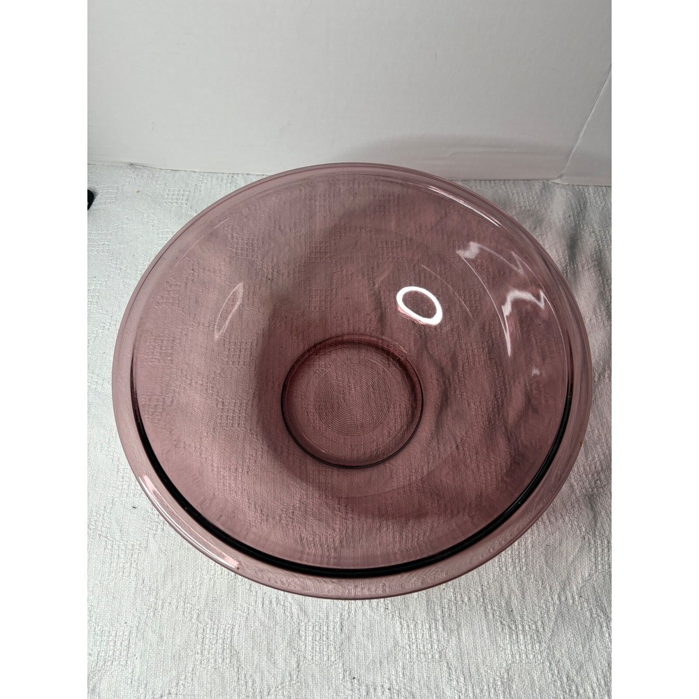 Pyrex 326 4L Large Mixing Bowl Cranberry Purple Pink Glass Nesting. Used in good condition. No chips or cracks, some scratches in bowl from prior use V Type: Serving Bowl Material: Glass Color: Purple Pattern: Solid Shape: Round