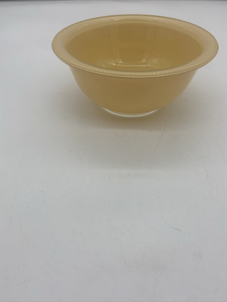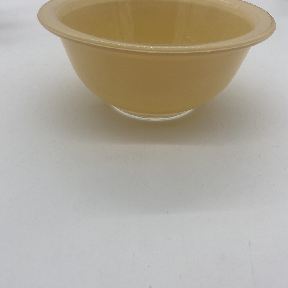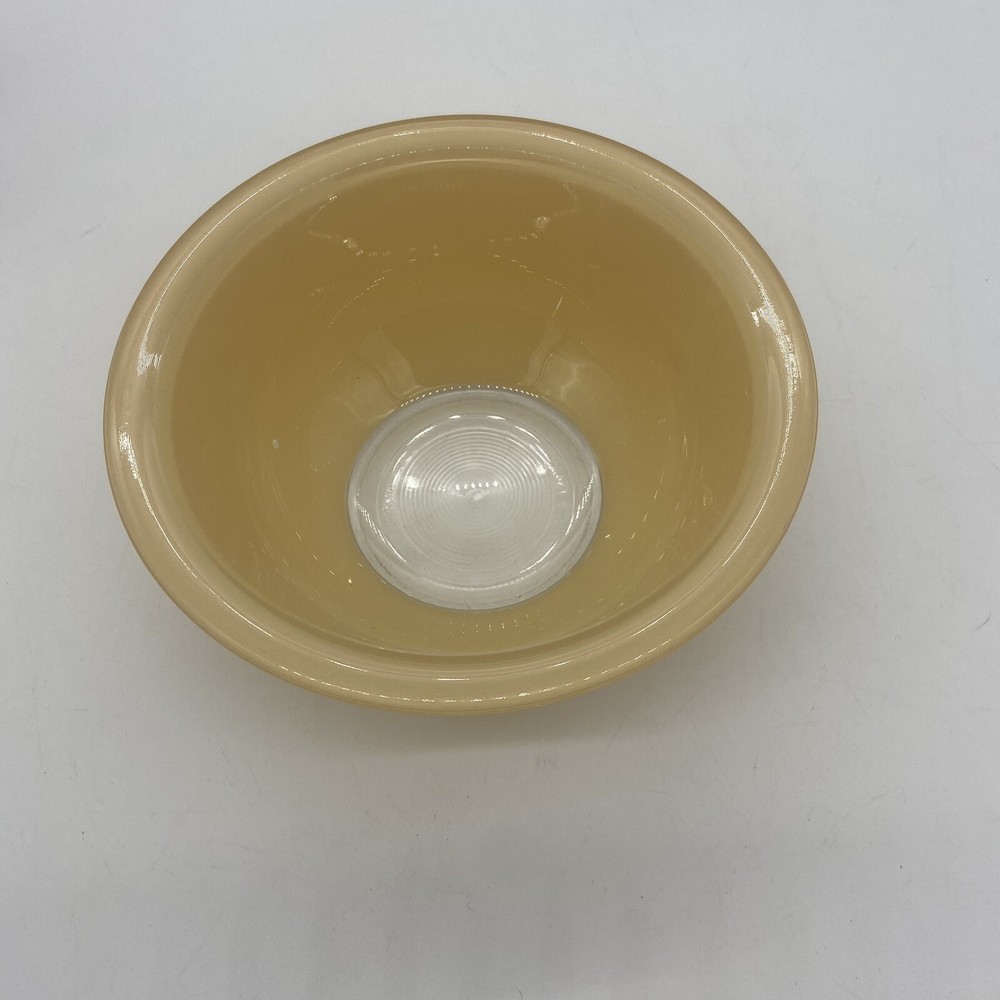 This beautiful 7 inch Pyrex mixing bowl is a must-have for every kitchen. Made of high-quality glass, this bowl is perfect for all your mixing needs. Its stunning gold color adds a touch of elegance to your kitchen décor. With a brand like Pyrex, you can trust that this bowl is durable and reliable. Its size is perfect for making small batches of your favorite recipes. Whether you're a seasoned chef or just starting out, this bowl is a great addition to your kitchen. Used Very Good - No Chips or Cracks - has some scratches. See pictures.