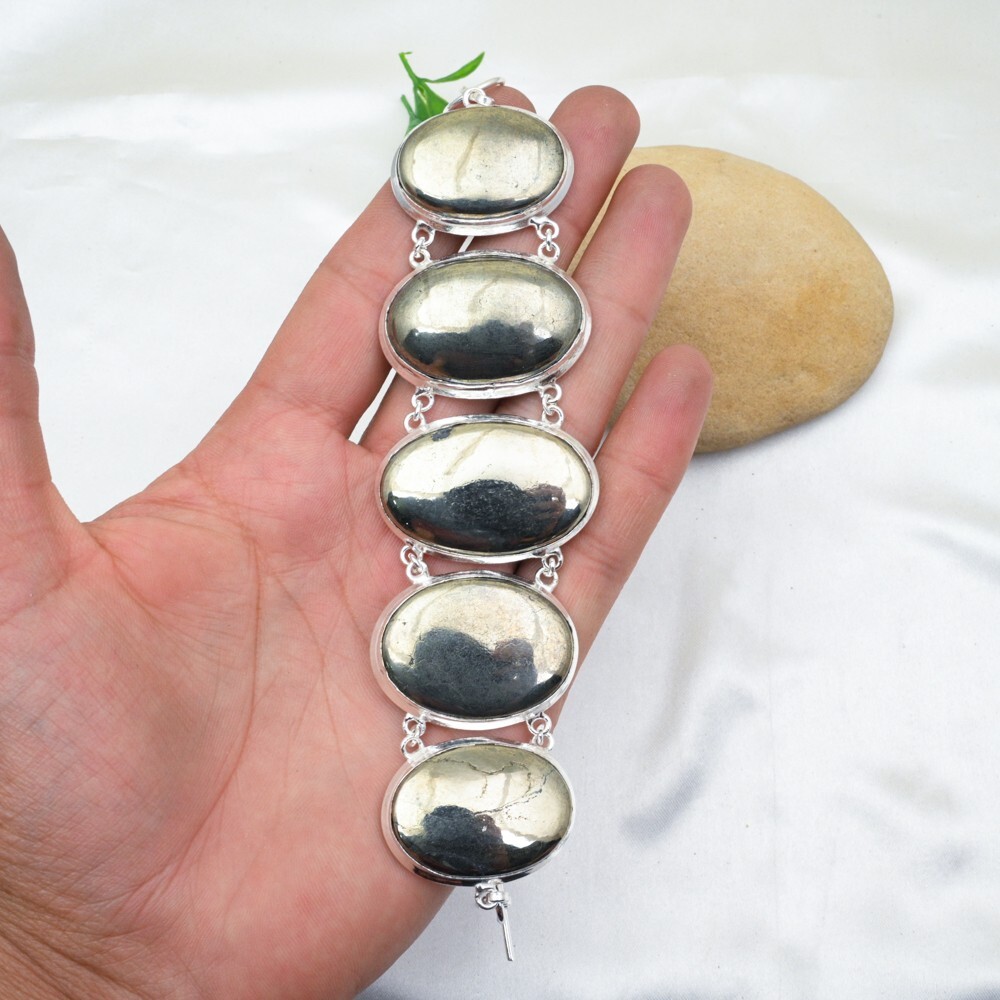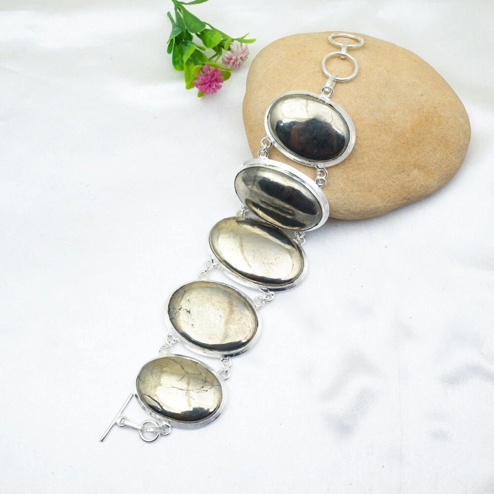 Item Length:8 inches with Adjustable ChainOccasion:Anniversary, Birthday, Christmas, Engagement, Mother's Day, Valentine's Day, WeddingCertification:N/AType:BraceletMetal:Sterling SilverMain Stone Width:N/ACountry/Region of Manufacture:IndiaCut Grade:ExcellentColored Diamond Intensity:N/ADiamond Color Grade:N/AChain Type:N/AShape:Same As PictureMain Stone Color:GoldenBrand:HandmadeMain Stone:Pyrite GoldenMain Stone Shape:OvalMain Stone Length:N/AMetal Purity:925Base Metal:Sterling SilverTheme:Beauty, Bohemian, Ethnic, Halloween, LoveClosure:ToggleMain Stone Creation:NaturalMaterials Sourced From:IndiaMain Stone Depth:N/ACollection:HandmadeSetting Style:BezelDiamond Clarity Grade:N/ANumber of Diamonds:N/AFeatures:AdjustableCharm Type:Same As PictureNumber of Gemstones:6Material:GemstoneSecondary Stone:Pyrite GoldenStyle:ChainMain Stone Treatment:Not EnhancedTotal Carat Weight:10 carat and aboveColor:Silver