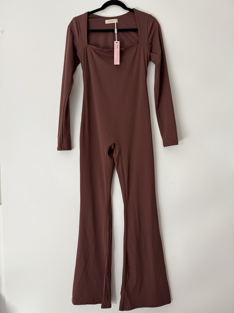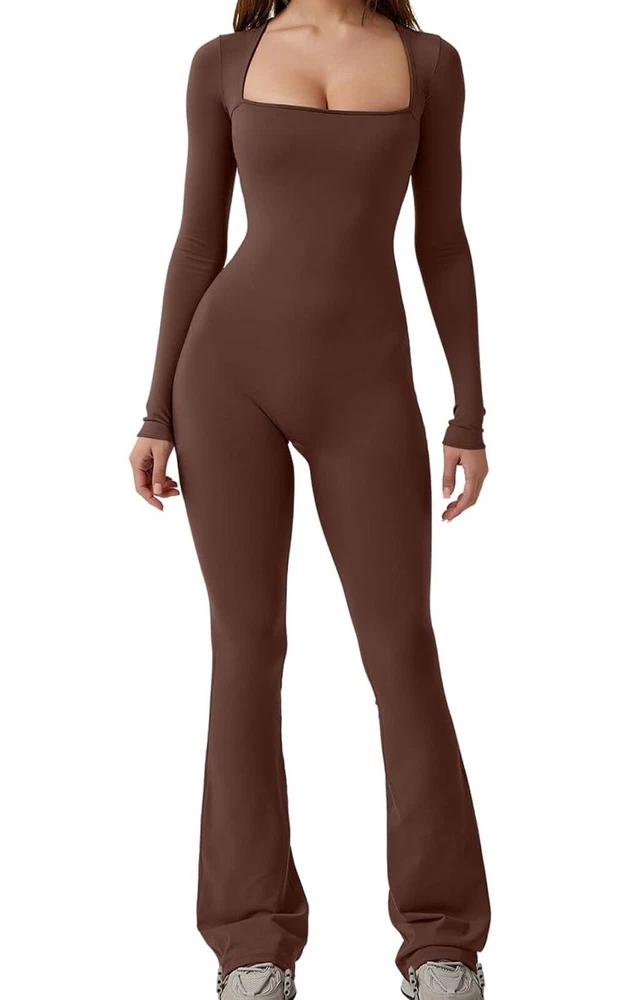 Elevate your fashion game with this stylish QINSEN jumpsuit in a beautiful brown color. Designed for women, this one-piece romper playsuit features a square neckline and long sleeves, with a pull-on closure for easy wear. Made from a high-quality blend of 78% nylon and 22% spandex, this athletic-fit jumpsuit is perfect for any season, whether it's winter, summer, fall, or spring. The wide-leg full-length design of this jumpsuit is perfect for a day out or a night on the town. It comes with leggings for added comfort and style. This one-piece wonder is perfect for women who want to make a statement with their fashion. Get ready to turn heads with this QINSEN jumpsuit, available in size L.