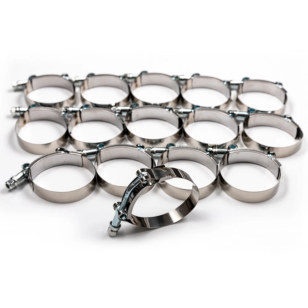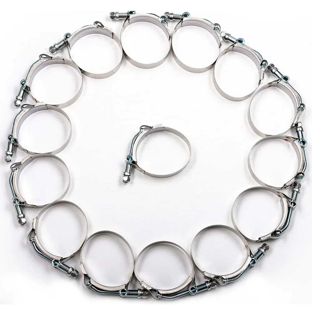 Specifications: Pipe Thickness: 1/16 in. (1.58 mm) Material: T6061 Aluminum OD: 2.5" or 63mm Total Pipe Length: 19.68'' or 500mm Thickness: 1.8mm Working Temperature: -76 °F (-60 °C ) to +500 °F (+260 °C) Working Pressure: 0.3 Mpa (43.5 PSI) to 0.9 Mpa (130.5 PSI) Bursting Pressure: 2 Mpa Thickness: 5 mm Size Tolerance: +/-0.5 mm ID: 2.5" or 63mm Finish: Dull Polished (Lower profile and more resistant to dirt than normal polished) Packing List: 2 Pcs Straight Aluminum Pipe 2 Pcs 45°Aluminum Pipe 2 Pcs 75°Aluminum Pipe 2 Pcs 90°Aluminum Pipe 8 Pcs 2.5" Straight Silicone Hose (Blue) 2 Pcs 2.5" 90 Degree Hose (Blue) 16 Pcs 2.5" Stainless Steel T-Clamp (as shown in the picture).