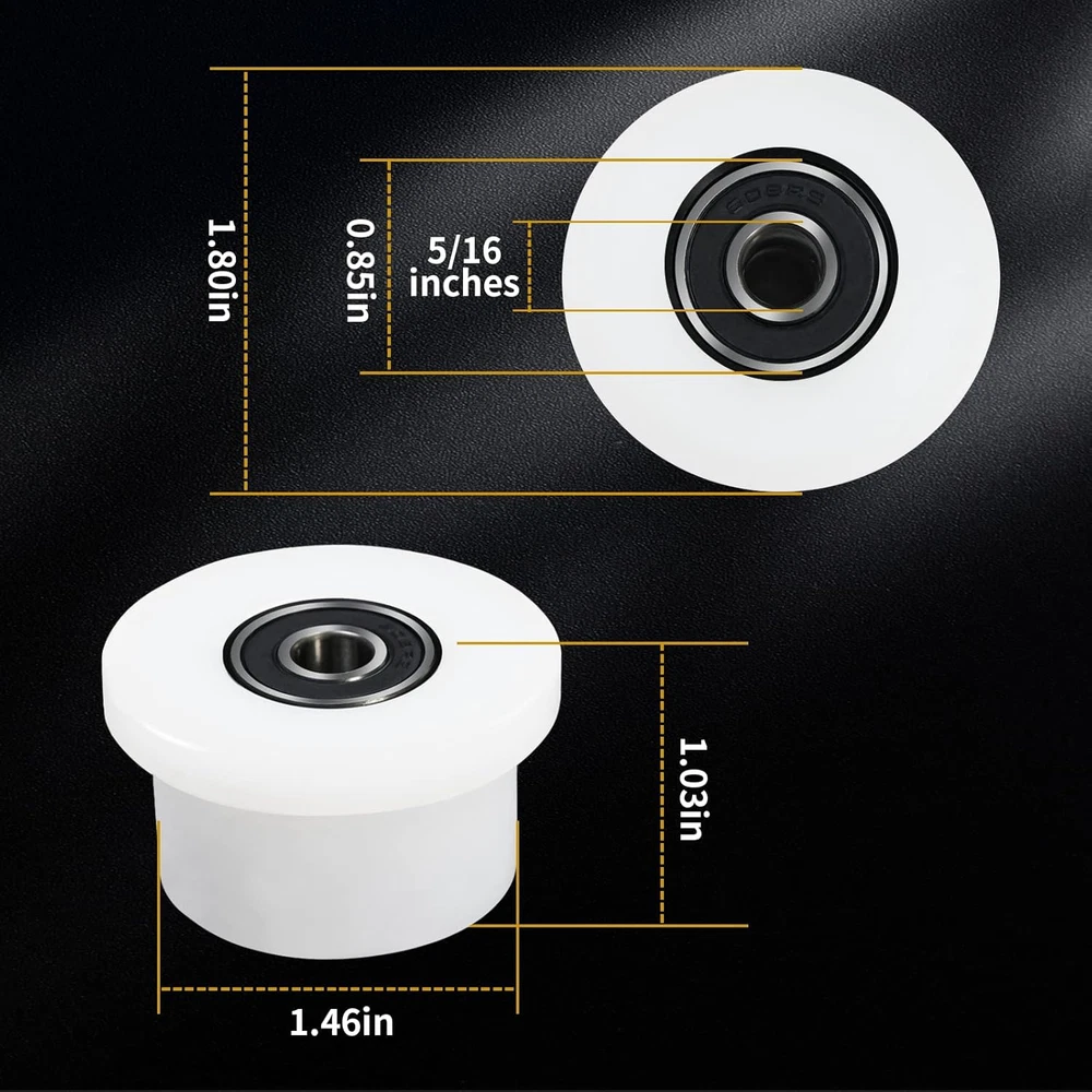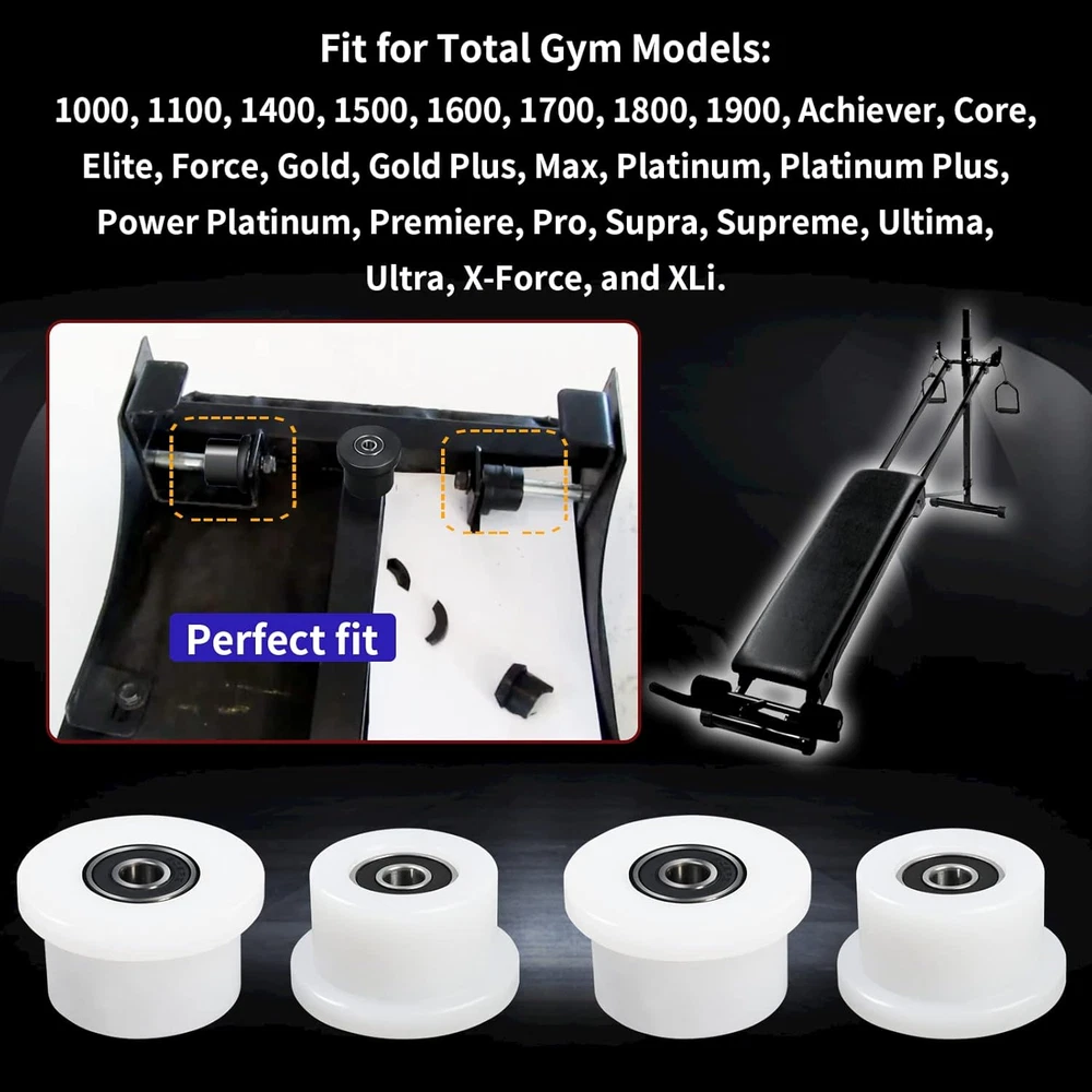 Store New Arrivals Add to Favorite View Feedback Contact Qty.4 Machined Wheels/Rollers Compatible Total Gym Replacement, Fits Models 1000,1100,1400,1500,1600,1700,1800,1900,Achiever,Force,Gold,Max,Platinum,Platinum Plus,Pro,Supra, Supreme,Ultima,Ultra,Xli Description Wheel Size 1.8 Inches Brand Vsttar Country of Origin China Exterior Finish Machined Material Plastic Vehicle Service Type Passenger Car Item Weight 209 Grams Model Qty.4 White Machined Wheels/Rollers Compatible Total Gym Replacement Product Dimensions 2 x 2 x 2 inches Manufacturer Vsttar Four (4) mechanical wheel/roller games can completely replace the gym. The through hole diameter of the bearing is about 5/16 inch. All bearings are included. Support models 1000, 1100, 1400, 1500, 1600, 1700, 1800, 1900, Achiver, Core, Elite, Force, Gold, Gold Plus, Max, Platinum, Platinum Plus, Power Platinum, Premiere, Pro, Supra, Supreme. Our rollers are made of high-quality engineering material solid plastic. This means that your gym will run again, and it will run at the highest efficiency. The wheels are made of softer and quieter materials. Tested and approved in laboratories and gyms. Stronger, quieter and more durable than the original and any other after-sales products. ! Manufacturing and testing functions and original OEM brand parts, but with better value than original compatible equipment manufacturer parts. You can buy with confidence. Product Description ABOUT US We offer the best prices around on high quality products. Our E-store includes media such as books, movies, music and games while offering electronics, toys, sporting apparel, clothing, tools, general home, garden items and more. SHIPPING We are always working hard to ensure your package arrives as soon as possible. Please understand that some factors like weather, high postal traffic, and the performance of shipping companies are outside of our control. We offer free shipping to the lower 48 states and ship within 2 business days of payment, usually sooner. We do not accept P.O. Boxes. Please provide a physical address. RETURNS We offer a 30-Day Return Policy on items which you are not completely satisfied with. You have the option for a full-refund or an exchange of the item. No returns are available on items shipped outside of the USA. PAYMENT We accept PayPal. CONTACT US This page content is yet to come Please ad us to your favorite seller and visit again later Thank You CUSTOMER SATISFACTION We try our very best to make sure every customer is completely satisfied. If there's a problem, message us! We're happy to help.