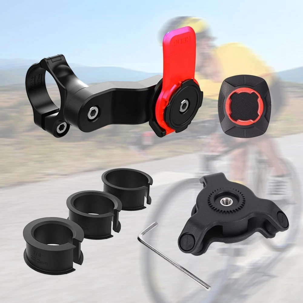 Bike Phone Holder with Shock Absorber Mountain Road Bicycle Phone Clamp Detachable Bicycle Handlebar Phone Holder Easy Install Bike Accessories Feature: 1.Shock Absorption: Equipped with a shock absorber, this bike phone holder effectively reduces vibrations and prevents your phone from shaking during rides. Enjoy a smooth and stable viewing experience, even on bumpy terrains. 2.Quick Installation and Removal: The bicycle phone mount allows for quick and easy installation and removal of your phone. With its user-friendly design, you can effortlessly attach and detach your phone, making it convenient for on-the-go use. 3.Universal Compatibility: The motorcycle phone bracket is not limited by phone models. As long as it can stick, it can accommodate any phone. No matter the size or brand, you can securely mount your device and keep it within easy reach while cycling. 4.Expandability: This mountain road bicycle phone clamp offers more than just phone compatibility. You can also attach other items, such as a bike computer or a walkie-talkie, as long as they can be securely mounted. Enjoy the flexibility to customize your setup according to your needs. 5.Wide Range of Applications: Suitable for various modes of transportation, including bicycles, motorcycles, electric bikes, and scooters. Whether you're a cyclist, a motorcyclist, or an electric vehicle user, this MTB handlebar phone stand is versatile enough to meet your needs. Specification: Origin: Mainland China Main Material: ABS Color: Red, Blue(optional) Packaging Size: About 160mm (6.3in) x 130mm (5.12in) x 55mm (2.17in) Product Size: About 110mm (4.33in) x 110mm (4.33in) x 50mm (1.97in) Net Weight: About 120g Note: Due to the different monitor and light effect, the actual color of the item might be slightly different from the color showed on the pictures. Thank you! Please allow 1-2cm measuring deviation due to manual measurement. 1 x Mobile Phone Holder 1 x Shock Absorber 1 Set x Accessories