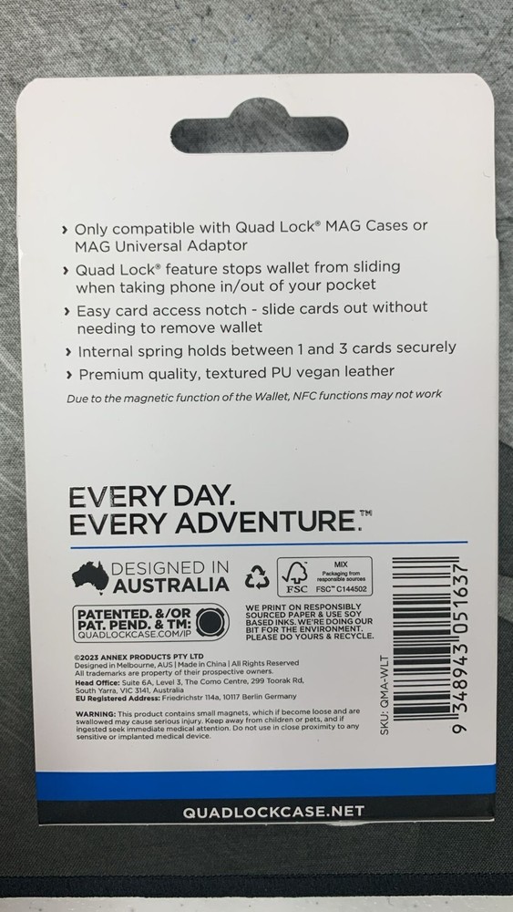 Quad Lock Mag Accessory Wallet QMA-WLT for Secure Storage