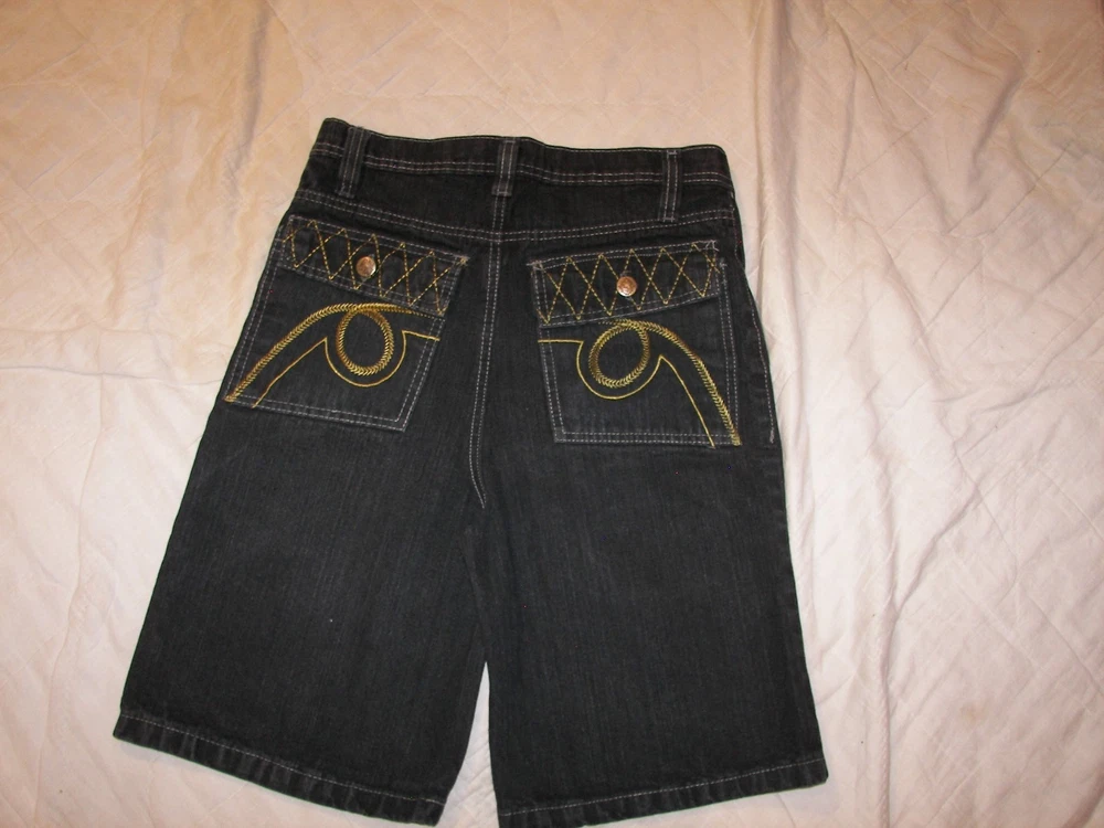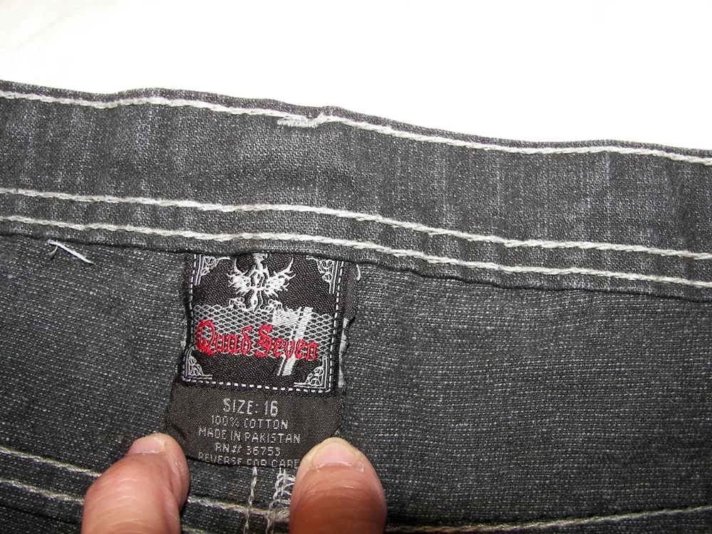 Quad Seven Denim Shorts - Size 16 - They are in very good condition...no spots or stains or tears.....100% Cotton. Unique embroidery on back pockets.... The waist measures 29 1/2", the front rise is 12" and the inseam is 9 1/4". They measure about 20 / 21" from top to bottom. very nice shorts...they come from a smoke free and pet free home. POB-4#0518485