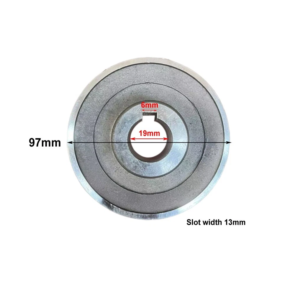 Quality Metal Triangle Flywheel Pulleys Designed for Air Compressor Use 265mm DESCRIPTION Features: *Compatibility: Designed specifically for A-type triangle belts, make sure a perfect fit and optimal performance in various applications. *Precise Dimensions: The installation slot width of 13m m guarantees a secure attachment, prevent slippage during operation and enhancing overall efficiency. *Robust Construction: Made from metal, this flywheel pulley offers longevity and resistance to wear, making it a reliable choice for your compressor needs. *Optimal Size: With a diameter of 265mm/300mm, the single-stage design is tailored for efficient power transfer, maximizing your machine's operational capabilities. *Versatile Application: good for a range of compressor setups, this pulley enhances performance across multiple machines, providing flexibility and utility for users. Specifications: *Product Name: Air Compressor Pulley Assembly *Material: Metal *Color: Silver *Size: (Approx. ) 265Ty pe: Pulley Size: Diameter: 265mm, Aperture: 21.5mm/23.5mm, Thickness: 27.5mm, Slot width 13mm Motor Pu lley Size: Diameter: 97mm, inner hole 19mm, keyway width: 6mm, Slot width 13mm 300Type: Pulley Size: D iameter: 300mm, Aperture: 22.5mm/24.5mm, Thickness: 25mm , Slot width 13mm Motor Pu lley Size: Diameter: 97mm, inner hole 24mm, keyway width: 8mm, Slot width 13mm *Suitable f or: Air compressor, air pump *Quantity: 2pcs/set Package Content: 1* Pulley 1* Motor Pu lley Note: 1. The real color of the item may be slightly different from the pictures shown on website caused by many factors such as brightness of your monitor and light brightness. 2. Please allow slight manual measurement deviation for the data. POLICES Shipping Payment WARRANTY We only ship to confirmed ebay Order addresses. Please comfirm that your Order address is in line with your shipping address. Please kindly note that the c ombined shipping is not provided because the shipping fee is calculated by weight. Also, the each additional item means exactly the the same color and size. It takes about 7 -15 working days to US; about 10-30 working days to other countries. Transit time may be a little delayed because of the bad weather and customs inspection . If you do not receive your item within 30 working days since payment finished, please contact us immediately for further assistance. Payment must be completed within 5 days. If you have any problems about payment, please contact us via ebay message. We strive for 100% customer satisfaction! Positive Feedback is very important to us. If you have any questions, p lease feel free to contact us via "Ask seller a question" . We will reply your email within 24 working hours.