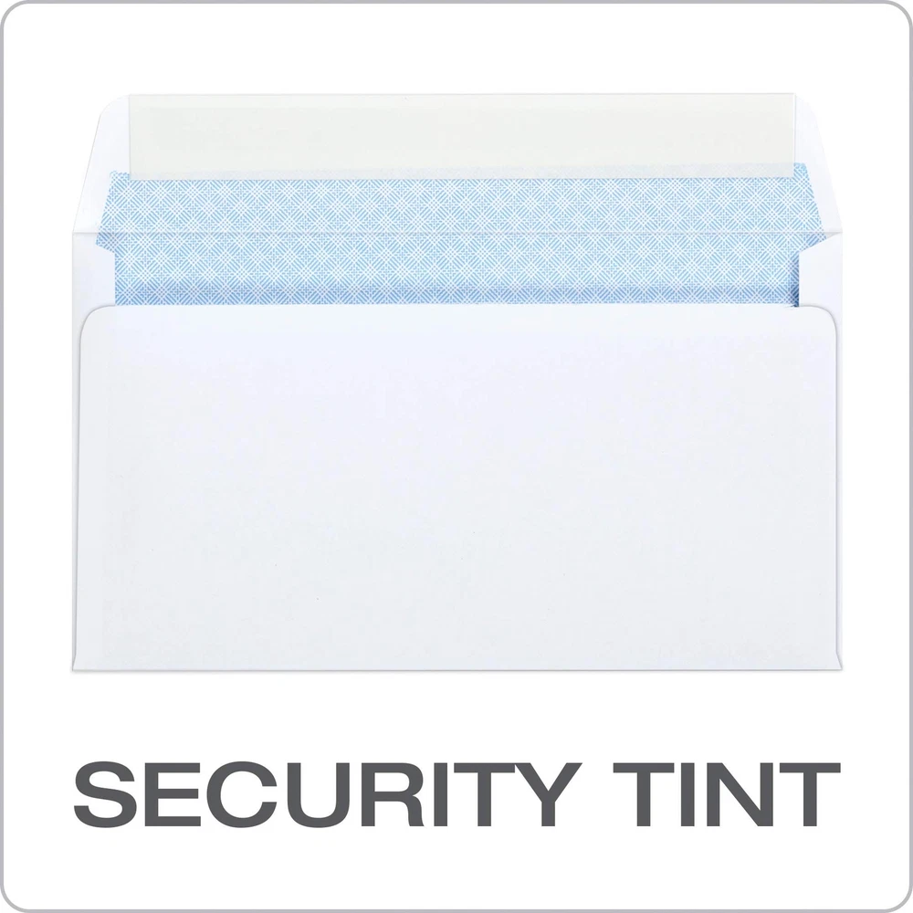 Quality Park #6 3/4 Security Envelopes have a strong peel & stick closure that seals fast without applying moisture. Our heavy opaque envelope stock is printed with a security tint that makes envelopes difficult to see through. A complex security pattern scrambles the appearance of numbers and text. Plus, Reid-Strip envelopes have a long shelf-life thanks to the paper strip that protects your adhesive from dust. Bright 24-lb. white wove paper is perfect for use at home or at work. 3-5/8 x 6-1/2 inches. Reid-Strip Envelope Closure. 24-lb White Wove. 100 Per Box. Strong, Fast and Efficient: Reid-Strip envelopes save time and increase efficiency with a removable strip and strong adhesive seal that ends the hassle of everyday mail duty. To close them, simply peel and press. Protected & Secure: Guard sensitive data with a security tint makes envelopes difficult to see through. A complex security pattern scrambles the appearance of numbers and text. These extra security features are essential for sending checks or personally identifiable information (PII) through the mail. Eliminate the Yuck Factor: We promise you won't miss licking envelopes or those drippy moistener sponges in a cup! Reid-Strip envelopes bring mailing into the modern era with a tidier, more hygienic and still very affordable alternative to standard envelopes. Long Lasting in Storage: The peel able paper strip is not only convenient, it protects your adhesive from dust so envelopes last longer. Bright White Elegance: 24-lb. white wove paper gives your everyday mailings a professional finish. Ideal for business or personal correspondence. Stock Up for Busy Season: Keep several boxes of this necessity on hand. SAVE TIME WITH SELF-STICK: Quality Park 6 3/4 Security Envelopes have a strong peel & stick closure that helps you fly through mailings in record time ENHANCED SECURITY: Offer the protection clients deserve & protect yourself from liability; a security tint makes envelopes hard to see through; a security pattern scrambles the appearance of text LESS YUCK: We promise you won't miss licking envelopes or crumbly, drippy sponges; complete your mailings, no accessories required STORE MORE, LONGER: Reid-Strip envelopes have a longer shelf-life thanks to the peel able strip that protects your adhesive from dust AN EXCELLENT VALUE: Bright White 24-lb paper makes an impression for business mailings and personal correspondence; get 100 3-5/8 x 6-1/2 inch envelopes