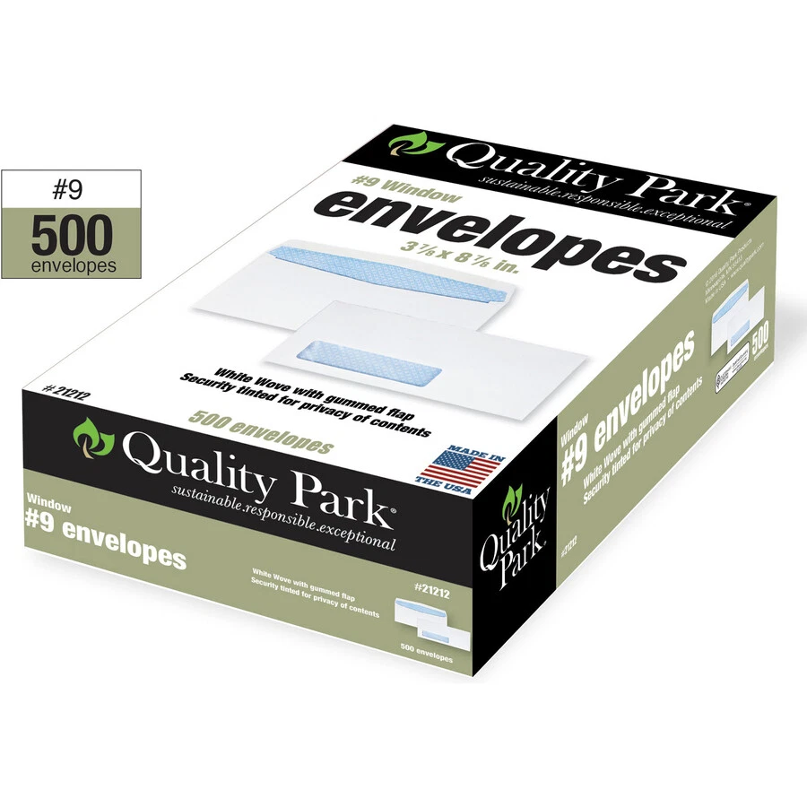 Quality Park Wove Finish Security Window Envelope - #9 [8.87" X 3.87"] - 24lb - Gummed - 500 - White (21212) Quality Park Wove Finish Security Window Envelope - #9 [8.87" X 3.87"] - 24lb - Gummed - 500 - White (21212) Assembly Required: No Recycled: No Country of Origin: United States Product Description This item is brand-new, factory sealed. Quality Park Window Envelopes are essential for your business. The reflex blue pattern protects sensitive client information because its impossible to see the details of the contents, even when held up to light. These 24-lb wove envelopes have traditional diagonal seams compatible with automated inserting and folding equipment. Each business envelope has a moisture seal commercial flap. Stock up on boxes so you dont run out! Security Tint. Seam Type: Diagonal; Flap Type: Commercial; Trade Size: 9; Security Tinted: Yes. Standard right window envelopes work for right side addressed forms like invoices, financial statements and direct mail. Made of 24-lb paper with side seams that provide a more modern, clean look. Just add moisture to the adhesive strip along the envelope flap and seal closed; no peel off strip to dispose of. Available in large quantities, these commercial envelopes are great for bulk mailings. Global Product Type:Business/Trade Envelopes Global Product Type:Business/Trade Envelopes Global Product Type:Business/Trade Envelopes Global Product Type:Business/Trade Envelopes Seam Type:Diagonal Seam Type:Diagonal Global Product Type:Business/Trade Envelopes Global Product Type:Business/Trade Envelopes Global Product Type:Business/Trade Envelopes Global Product Type:Business/Trade Envelopes Flap Type:Commercial Flap Type:Commercial Trade Size:#9 Trade Size:#9 Security Tinted:Yes Security Tinted:Yes Opening:Open Side Opening:Open Side Envelopes/Mailers Closure:Gummed Envelopes/Mailers Closure:Gummed Exterior Material(s):Paper Stock Exterior Material(s):Paper Stock Finish:Wove Finish:Wove Basis Weight:24 lb Bond Basis Weight:24 lb Bond Envelopes/Mailers Exterior Dimensions:3.88 x 8.88 Envelopes/Mailers Exterior Dimensions:3.88 x 8.88 Color(s):White Color(s):White Color Family:White Color Family:White Window Position:Lower Left Window Position:Lower Left Window Size:4.5 x 1.13 Window Size:4.5 x 1.13 Product Biodegradability in Days:0 Product Biodegradability in Days:0 Pre-Consumer Recycled Content Percent:0% Pre-Consumer Recycled Content Percent:0% Post-Consumer Recycled Content Percent:0% Post-Consumer Recycled Content Percent:0% Total Recycled Content Percent:0% Total Recycled Content Percent:0% Footnote 1:Bond basis weight is measured in pounds per 500 uncut 17" x 22" sheets of paper Footnote 1:Bond basis weight is measured in pounds per 500 uncut 17" x 22" sheets of paper Footnote 1:Bond basis weight is measured in pounds per 500 uncut 17" x 22" sheets of paper Footnote 1:Bond basis weight is measured in pounds per 500 uncut 17" x 22" sheets of paper Footnote 1:Bond basis weight is measured in pounds per 500 uncut 17" x 22" sheets of paper Footnote 1:Bond basis weight is measured in pounds per 500 uncut 17" x 22" sheets of paper Footnote 1:Bond basis weight is measured in pounds per 500 uncut 17" x 22" sheets of paper Footnote 1:Bond basis weight is measured in pounds per 500 uncut 17" x 22" sheets of paper Special Features:Security Tint Special Features:Security Tint Specification Physical Characteristics Product Color White Color Family White General Information Brand Name Quality Park Marketing Information Security envelopes are perfect for sending confidential papers. Gummed flap ensures a firm seal to prevent it from peeling during a delivery. Clear window allows you to use a printed address for quick, convenient use. Product Type Envelope Product Name 21212 Security Envelopes Manufacturer Quality Park Products Manufacturer Part Number 21212 Packaged Quantity 500 / Box Title Product Title Quality Park Wove Finish Security Window Envelope (21212) Product Information Mailer/Envelope Type Security Mailer/Envelope Classification #9 Mailer/Envelope Length 3 7/8" Basis Weight 24 lb Window Height 1.12" Window Width 4.50" Seam Contemporary Mailer/Envelope Width 8 7/8" Window Location Left Features Security Tint Closure Type Gummed Shipping Most orders placed prior to 11AM PST ship same business day Some lightweight items ship Postal and can be shipped to a PO BOX. Most other orders will ship via UPS or FedEx. Please note we cannot ship UPS or FedEx to PO Box addresses. Expedited orders will ship 2nd Day Air Returns This item is eligible for return within 30 days of delivery. Opened items must be in re-sellable condition including original packaging and all accessories. Please visit our Returns Page for more information on Excluded Items, Damage Claims, and more details on requesting RA information. [ Read our full policy ] About Beach Audio Founded in August 2002, Beach Audio´s mission is to provide the best experience on the Internet for buying Consumer Electronics. We focus on making purchasing online a pleasant experience. We offer flat rate Ground shipping on all items less than 75 pounds that can be shipped via common carrier. Our sales office is located in beautiful town of Redondo Beach, California, just a few miles South of Los Angeles International Airport. We do not stock any inventory at our sales office. Instead, we ship from several warehouses located throughout the country. Our sophisticated fulfillment system will automatically ship from the warehouse location that is closest to your shipping address! Why are our prices so low? It´s simple. We have modeled our business much like a wholesaler. We sell in huge volume and have streamlined our operations to provide you with the best combination of price and service available anywhere. Hours of Operation 8AM - 5PM PST MON - THU, 8AM - NOON PST FRIDAY [ Read more ] Copyright© Beach Audio Inc, 2022