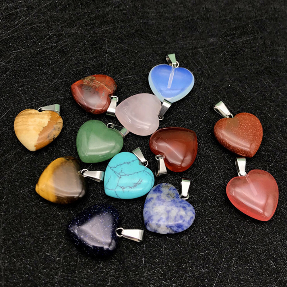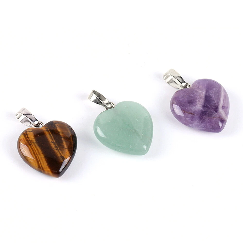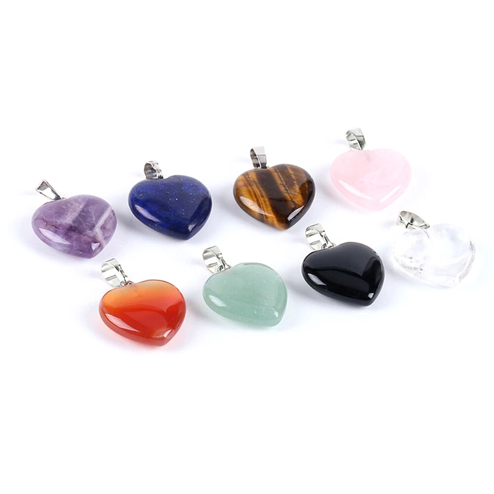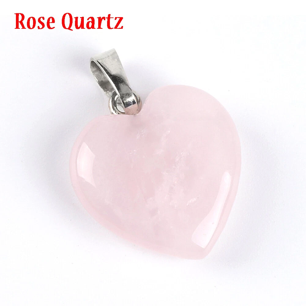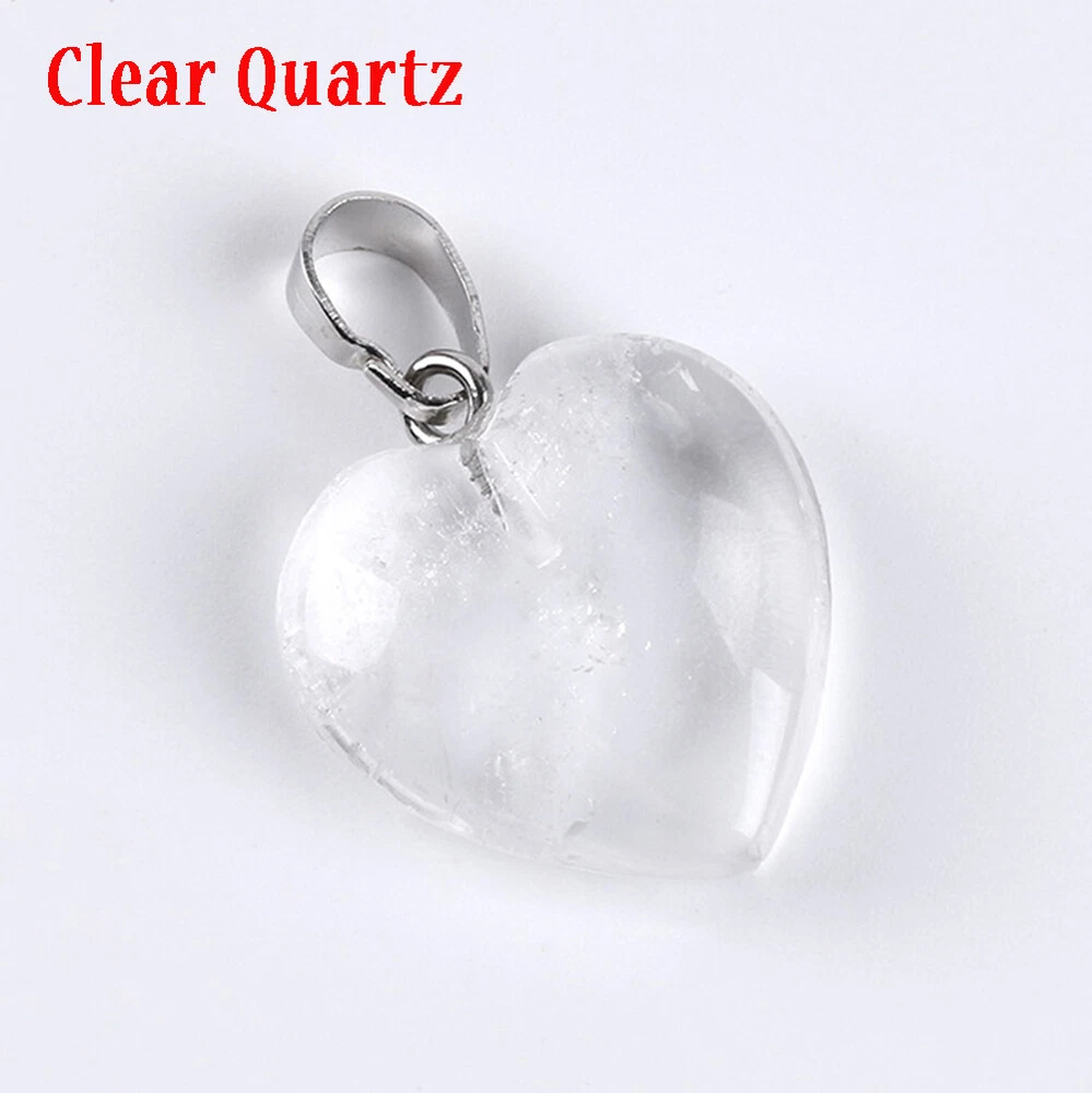 Quartz Heart Pendant Necklace Natural Stone Crystal Chakra Healing Jewelry