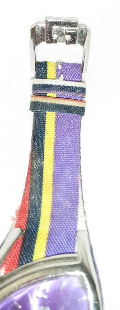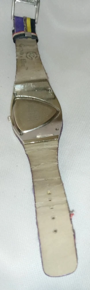 Geneva Quartz Watch Elite 91368 Stripe Band Purple Dial Women's 7" See Other Jewelry, Clothes, Accessories, And Collectibles Inside This Store. Thank You For Shopping. Please Visit Again Soon.