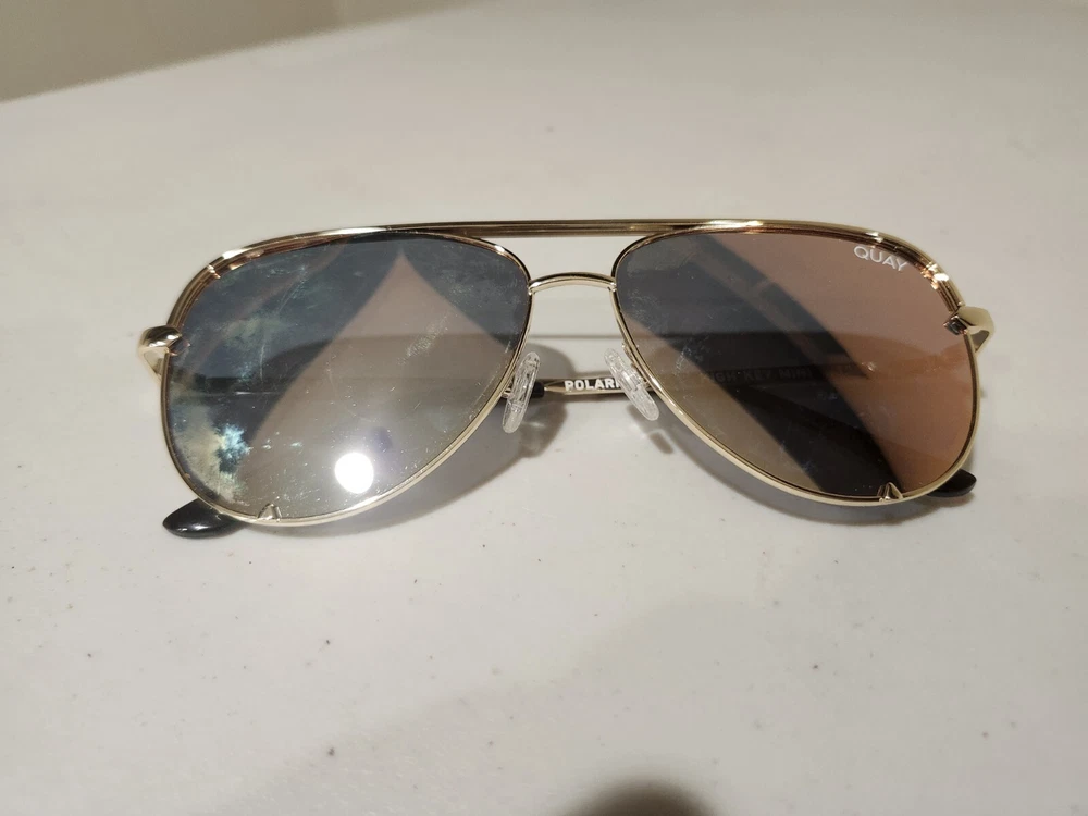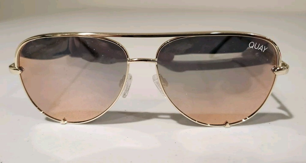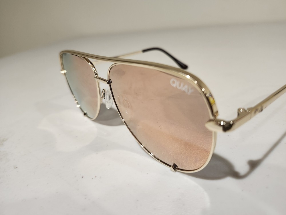 Quay Australia HIGH KEY MINI Sunglasses Rose Frame with Copper Fade Mirror Lenses