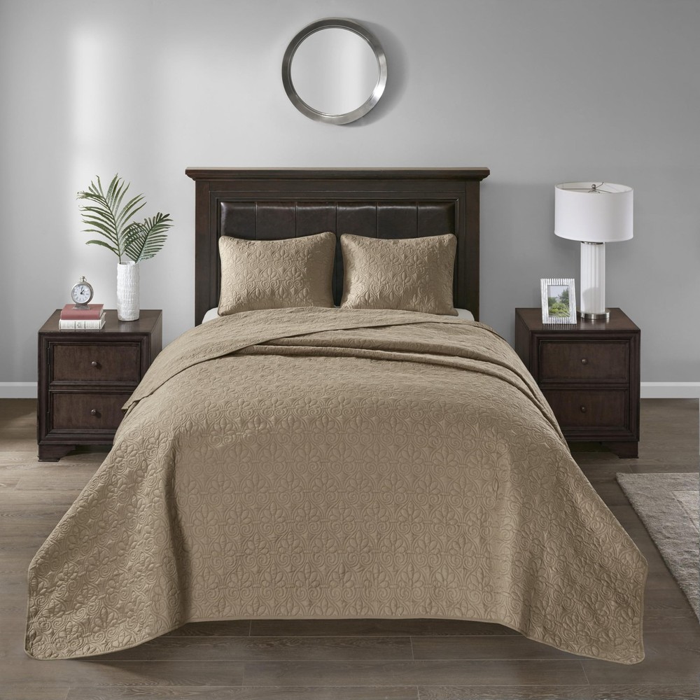 $ 16.11MADISON PARK ATTINGHAM 7-Piece Full/Queen Beige Coverlet Bedding Set New