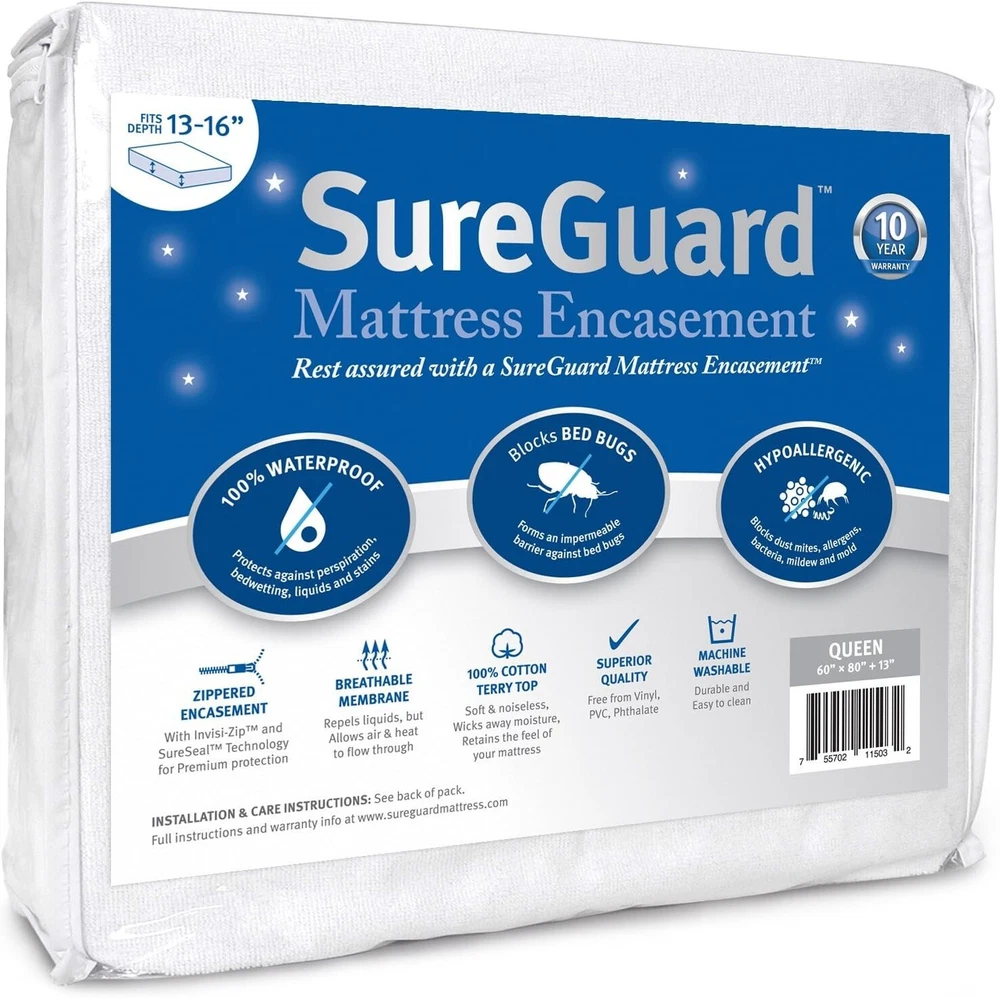 Queen 13-16 in. Deep Waterproof Mattress Encasement - Bed Bug and Allergy Proof ‹ › ‹ › ‹ › ‹ › ‹ › ‹ › ‹ › ‹ › ‹ › Queen 13-16 in. Deep Waterproof Mattress Encasement - Bed Bug and Allergy Proof - Premium Cotton Terry Features: 100% Waterproof - Encasement protects against perspiration, bed wetting, liquids, and stains with a six-sided premium mattress protector. 10-year quality guarantee for long-lasting protection. Bed Bug Proof - Innovative Invisi-Zip and SureSeal technology completely seals off your mattress from unwanted pests. Protects from dust, dirt, and dander, ensuring your mattress remains clean and fresh. Soft & Noiseless - crafted from 100% cotton terry, it wicks away moisture while retaining the luxurious feel of your mattress. Free from vinyl, PVC, phthalates, fire retardants, and other toxic chemicals for a safer sleep environment. Queen size (60 in x 80 in) fits mattresses from 13 to 16 inches deep. Zippered Mattress Encasement is machine washable and dryable. Independently lab tested and GREENGUARD Gold certified for product safety. Benefits: Enjoy a truly peaceful night’s sleep, free from allergens and pests. Easy to maintain with machine-washable convenience. Provides peace of mind against spills or accidents. Soft cotton terry keeps your mattress comfortable while enhancing its lifespan. Assured quality and safety, perfect for families with children or pets. Why choose our Waterproof Mattress Encasement? Your mattress deserves only the finest protection! Experience the ultimate peace of mind with our 100% waterproof, bed bug, and allergy-proof encasement. Designed using innovative technology and premium materials, this encasement not only safeguards your investment but also ensures a healthier sleep environment. With its luxurious feel, easy-care design, and long-lasting quality guarantee, don’t settle for less. Upgrade your bedroom sanctuary today with our Queen Waterproof Mattress Encasement! Shipping Free & Fast Shipping - We offer free shipping to most of the USA with a normal delivery time of 3-7 days. However, due to the current situation, additional delivery time (up to 3 weeks) may be required for some items. Alternative Carriers - We may use alternative carriers (e.g. USPS, FedEx, UPS, etc.) to ensure your package arrives safely and on time. Due to the use of multiple carriers, we are unable to provide a tracking number automatically. Handling Time - Orders are processed and shipped within 1-2 business days of receiving cleared payment. Shipping Restrictions - Shipping to Alaska, Hawaii, Puerto Rico, Guam, and other US territories may incur shipping charges or delivery restrictions. Please contact us before ordering, or your order can be refunded/cancelled. State Restrictions - There may be restrictions based on your state of purchase. For example, certain items may not be shipped to California due to state regulations. Contact for Tracking Updates - If you require tracking updates or have any concerns about the delivery of your order, please feel free to contact us, and we will be happy to assist you. Return 30-Day Hassle-Free Returns - We want you to be completely satisfied with your purchase. If you are not, you can return the item within 30 days of receiving it for a full refund or exchange. Easy Return Process - To start a return, simply contact us and we will provide you with a prepaid return shipping label and detailed instructions. Restocking Fee - There are no restocking fees for returns. However, the buyer is responsible for return shipping costs if the return is not due to a seller's error. Refund Processing Time - Refunds will be processed within 5 business days of receiving the returned item in its original condition. Payment We accept all major credit cards, PayPal, and Apple Pay for your convenience. Your payment information is secure and encrypted to ensure a safe and seamless transaction. Please complete your payment within 3 days of purchase to avoid any delays in shipping. Feedback Your feedback is extremely important to us. We strive to provide the best products and customer service possible. If you are satisfied with your purchase, please take a moment to leave us a positive review. If you have any concerns or issues with your order, please contact us before leaving negative feedback. We are committed to resolving any problems and ensuring your satisfaction. Contact Us If you have any questions or concerns, please feel free to reach out to our customer support team. You can contact us through the eBay messaging system. We are available Monday to Friday, 9:00 am to 5:00 pm EST, and we will do our best to respond to your inquiry within 24 hours. Buy it now and enjoy a pleasant shopping experience! UPC: Not Set Item Length: Waterproof Mattress Encasement Item Width: Waterproof Mattress Encasement Unit Quantity: 3.3 lb Material: Cotton,Premium Cotton Terry Features: Hypoallergenic,Machine Washable,Waterproof,Bed Bug Proof,Zippered Care Instructions: Machine Wash Character: Not Set Theme: Not Set Department: Unisex Baby & Toddler,Kids,Teens,Adults Room: Bedroom Labels & Certifications: Not Set Brand: Unbranded Size: Queen Type: Mattress Encasement Fill Material: Not Set Color: White Pattern: Not Set MPN: Not Set Closure Type: Zip Insulation: Not Set Country/Region of Manufacture: Not Set Character Family: Not Set Style: Not Set GSM (Grams per Square Meter): Not Set Shape: Not Set Model: Not Set Product Line: Not Set Thread Count: Not Set Unit Type: lb