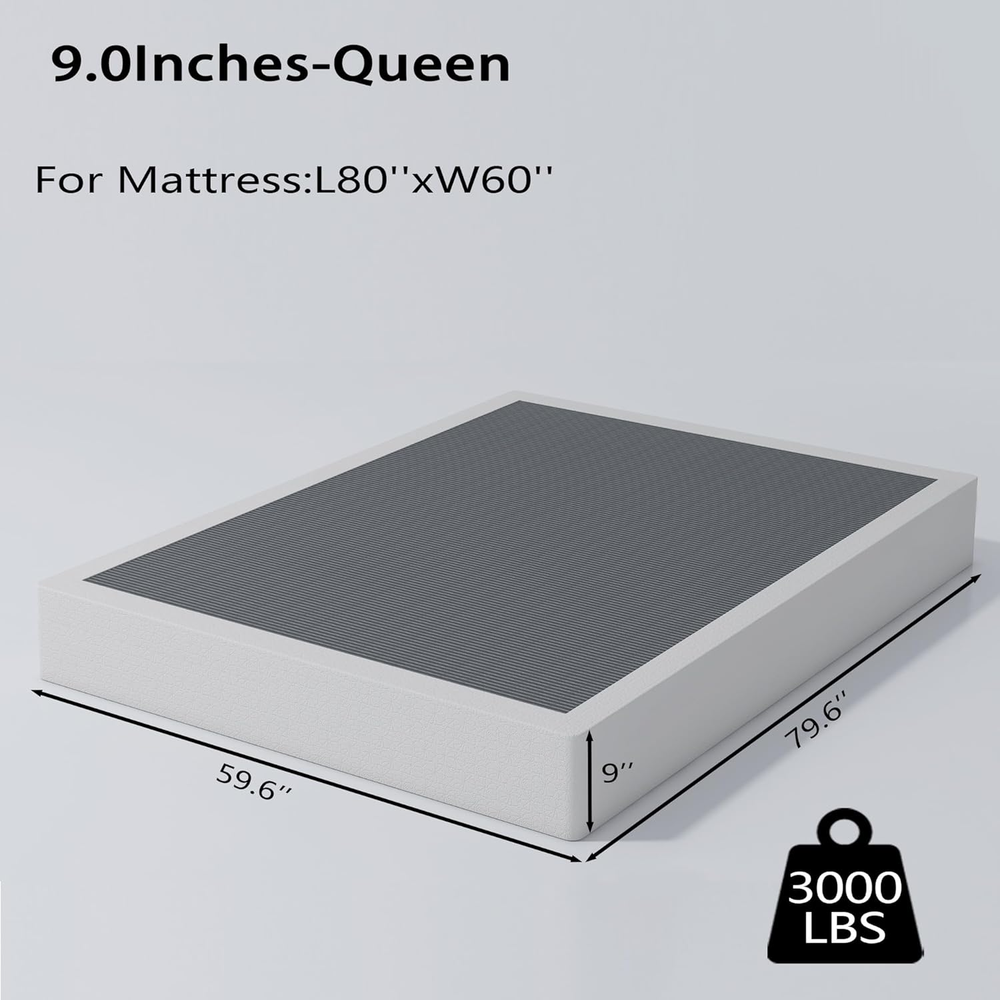 Store New Arrivals Add to Favorite View Feedback Contact Queen Box Springs 9 Inch Heavy Duty Metal Box Spring Mattress Foundation 3000Lbs Max Weight Capacity/Non-Slip/No Noise/Easy Assembly/Easy Clean Cover Product Information Item model number Queen Box Spring 9 Inch Finish Type Powder Coated Assembly Required Yes Included Components Slats Color Black Is Discontinued By Manufacturer No Product Dimensions 79"L x 59.49"W x 9"H Country of Origin China Display Height 9.0 Inches Compatible With Mattress Size Queen Item Weight 37.2 pounds Maximum Weight Recommendation 3000 Pounds Furniture Finish Black Material Metal Style 9 Inch Ground To Item Distance 9 Inches Form Factor Box Size Queen Special Feature Squeak Resistant Product Care Instructions Wipe with Damp Cloth ABOUT US We are proud to be based in the United States, with all of our products shipping directly from within the country. Our selection includes home décor, furniture, sports equipment, tools, pet products, and more. If you have any questions about our products, we’re always happy to help. SHIPPING We are always working hard to ensure your package arrives as soon as possible. Please understand that some factors like weather, high postal traffic, and the performance of shipping companies are outside of our control. We offer free shipping to the lower 48 states and ship within 2 business days of payment, usually sooner. For shipping outside of the continental USA, we only use eBay's Global Shipping Program. The item is shipped to IL and then sent to the rest of the world. RETURNS We offer Free Returns for 30-Days on items which you are not completely satisfied with. You have the option for a full-refund or an exchange of the item. CUSTOMER SATISFACTION We try our very best to make sure every customer is completely satisfied. If there's a problem, message us! We're happy to help.