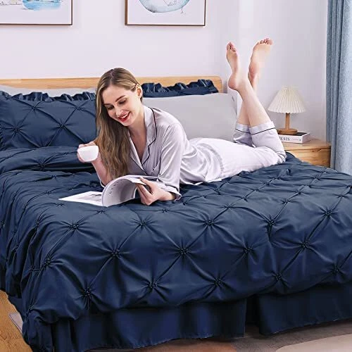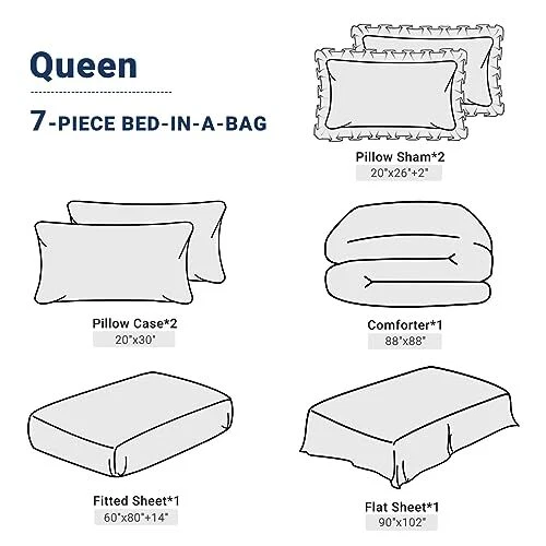 Return Policy Fast Delivery Trusted seller Queen Comforter Set 7 Pieces, Navy Blue/Gray Bed in a Bag Comforter Set for Bedroom, Bedding Comforter Sets with Comforter, Sheets,Ruffled Shams & Pillowcases Product Description [Premium Material]: Our bedroom comforter sets keep you comfortable in any weather because the comforter, sheets, and pillowcases are made from 100% brushed microfiber. The 1000 thread count fabric gives a soft feel and makes you snug when curled up. [Elegantl Design]: These queen-size comforter sets are designed in a pinch pleated style that perfectly combines fashion and beauty. The pintuck and ruffled design on the two pillow shams add unique and fashionable taste to your bedroom. [All-round Elastic]: The cooling fitted sheet has 360° elastic all around to grip the mattress better and keeps it in place all night long. An extra 14 inches depth accommodate a deep mattress or toppers. [Easy to Care]: The comforter sets can be easily removed and machine-washed. Just throw it into the washing machine and wash it with cold water. Please do not use bleach, iron, or fabric softener. [What You Can Get]: queen bed in a bag sets include: 1 comforter (90"x 90"), 1 flat sheet (90"x 102"), 1 fitted sheet (60"x 80"x14"), 2 pillowcases (20"x 30") and 2 pillow shams (20"x 26"). Shipping Returns Payment Shipping Shipping is FREE to all addresses other than APO/PO boxes in the lower 48 states. All our stock ships from US-based warehouses. Shipped via USPS or UPS (depending on location and package weight) Unless stated otherwise, all orders will ship within 24-72 hours of your payment being processed. Check our feedback to see the great reviews of FAST shipping we offer. Returns Seller does not accept returns Payment We currently accept payment via eBay managed payments only. Once payment is cleared, we will dispatch your shipment within 1-3 business days. Please refer to the "Shipping" tab for more information regarding shipping speed to your destination.