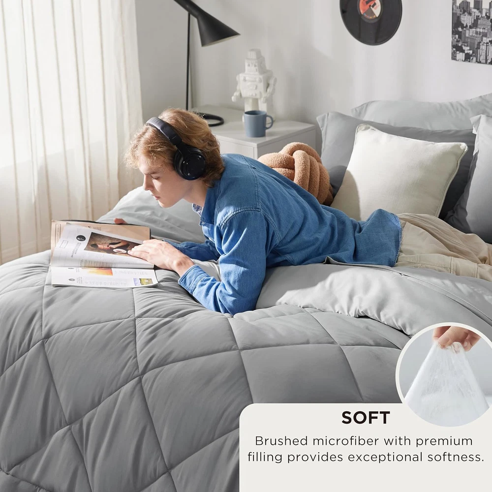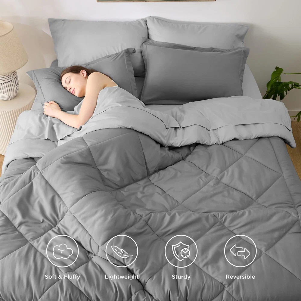 Fast Shipping Great Customer Support Satisfaction Guaranteed DESCRIPTION Shipping Shipping Shipping All domestic packages are shipped for Free (Unless other shipping method was selected during the checkout) Most items ship and arrive much sooner than the estimate delivery date. Usually within 2-3 days from payment. However, we have longer estimates to compensate for the occasional delay or supply chain breakdown. We do not accept P.O. BOXES - PLEASE PROVIDE A PHYSICAL ADDRESS Return Return Return In the event that you would like to return your purchase, we allow returns that are processed within the defined return date (the return date is to be found in the return policy/shipping and handling section) Please contact us for a return authorization and the return shipping address. Payment Payment Payment PayPal is our preferred method of payments it's the quickest, easiest and most secure way to pay for your goods or services online. PayPal offers buyer and seller protection should there be a problem. If you do not have a PayPal account, to get started and buy your first item with us is very easy. Simply click on the 'Buy It Now' button and follow the eBay checkout steps. Select PayPal as the payment method you then will be given the chance to enter your card details in to PayPal's secure checkout in order to pay for your order. Once the payment has been made, you will then be given the opportunity to make your own PayPal account to make paying for your items in the future very easy. Should there be a problem with payment please do let us know. Feedback Feedback Feedback Customer satisfaction is very important to us. If you have any problem with your order,please contact us and we will do our best to make you satisfied, please do not leave a negative feedback before we resolve your problem. We guarantee that your issue will be solved quickly. As long as you are happy with your purchase of , please leave us a positive feedback. Your feedback is very important to us it affects our search placement on eBay. We will leave a positive feedback for you in return automatically once we receive your feedback. Contact Us Contact Us Contact Us If you have any queries, please contact us via ebay. We usually respond within 24 hours on weekdays. Thank you for visiting our ebay store! Soft & Warm: Made with premium microfiber filling and a quilted design for extra softness, volume, and durability—the queen comforter set offers just the right amount of warmth for all season comfort. Reversible: Featuring a reversible and dual-tone design, you can mix, match, and personalize your space with just a flip and add a simple touch of style to your bedroom's decor. Thoughtful Details: This bedding set includes a fitted sheet with a pocket for mattresses up to 14" deep, envelope closure pillowcases to keep your pillows secure, and diamond pattern quilting to prevent the comforter filling from shifting. Easy to Maintain: This bed set is durable and easy to maintain, with even dense stitching and machine washability for long-lasting use. Simply machine wash in cold water on a gentle cycle for a like-new restoration. Inclusive and Convenient: This inclusive queen 7-piece bed-in-a-bag set comes with a comforter, two pillowcases, two pillow shams, a fitted sheet and a flat sheet to completely and conveniently transform your bare mattress into a cozy sleep haven with just one bundle and delivers year-round comfort and warmth. Queen Comforter Set 7pc Reversible Grey Bedding in a Bag Sheets & Pillowcases Click here to see description Fast Shipping Great Customer Support Satisfaction Guaranteed DESCRIPTION Shipping All domestic packages are shipped for Free (Unless other shipping method was selected during the checkout) We ship within two business days of payment, usually sooner Standard FREE shipping takes between 3-5 business days Expedited shipping takes between 2-3 business days Overnight shipping takes between 1-2 business days We do not accept P.O. BOXES - PLEASE PROVIDE A PHYSICAL ADDRESS We Ship Globally using ebay's GSP, the item is sent to a logistic center in KY and shipped from there to the rest of the world. International customers are responsible for all duties and taxes Contact your local authority for questions related to the amount of duties or taxes you will be responsible for Return In the event that you would like to return your purchase, we allow returns that are processed within the defined return date (the return date is to be found in the return policy/shipping and handling section) Please contact us for a return authorization and the return shipping address. Please contact us for a Return Merchandise Authorization (RMA) number. We advise you to use a reputable carrier service when returning your goods. Please pack all returns appropriately. We ship globally Via eBay's global shipping program (GSP). Thus we don't cover returns for items shipped globally. Buyers returning such items will be refunded ONLY for the item's cost and not for the shipping. please check the Voltage information and make sure it matches the one in your country. In case it's not stated in the description, do ask us. Payment PayPal is our preferred method of payments it's the quickest, easiest and most secure way to pay for your goods or services online. PayPal offers buyer and seller protection should there be a problem. If you do not have a PayPal account, to get started and buy your first item with us is very easy. Simply click on the 'Buy It Now' button and follow the eBay checkout steps. Select PayPal as the payment method you then will be given the chance to enter your card details in to PayPal's secure checkout in order to pay for your order. Once the payment has been made, you will then be given the opportunity to make your own PayPal account to make paying for your items in the future very easy. Should there be a problem with payment please do let us know. Feedback Customer satisfaction is very important to us. If you h