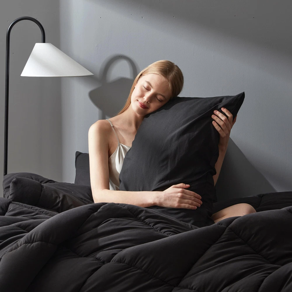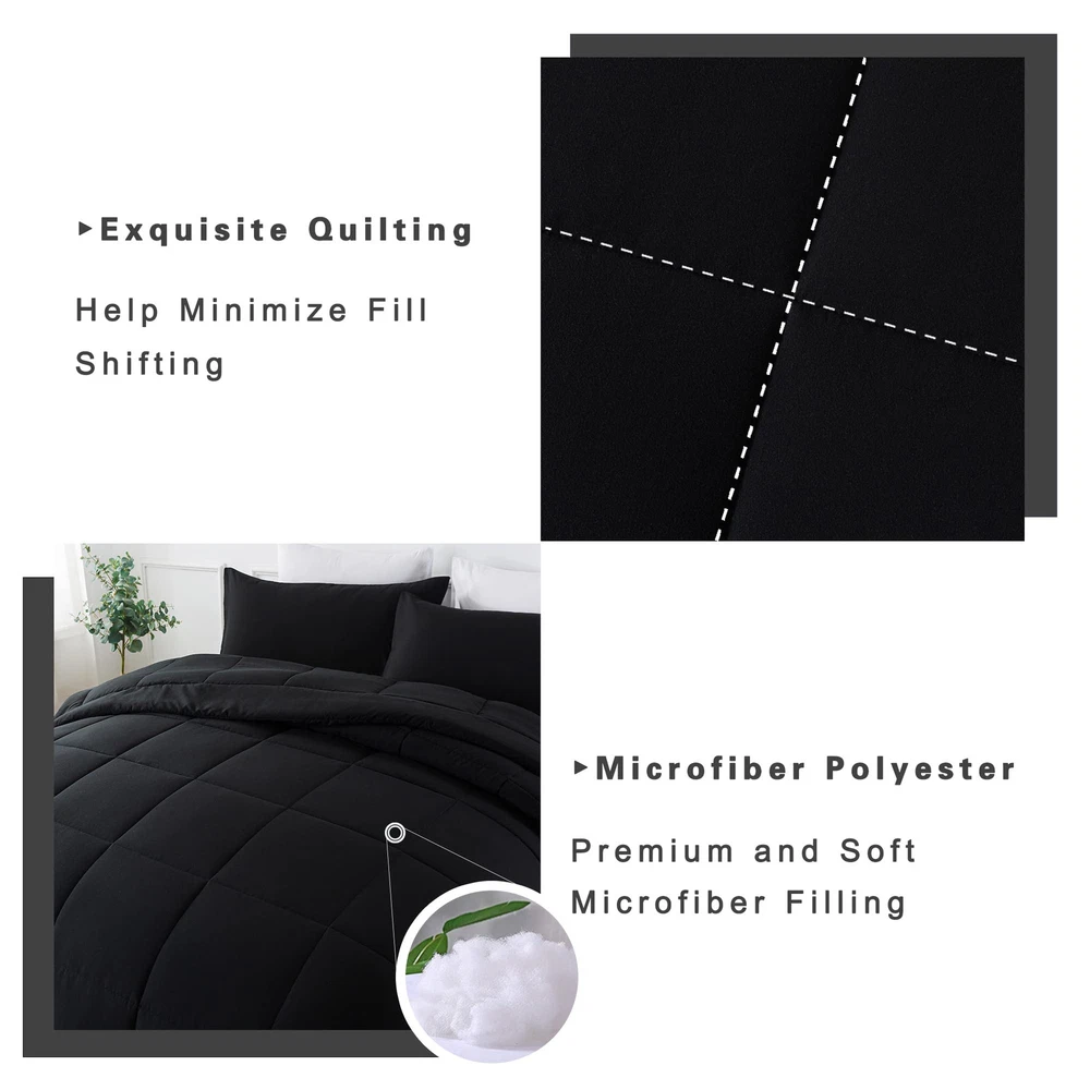 High Quality Fabric: The queen comforter set is made of premium microfiber polyester fabric, which is soft and breathable, provides you a comfortable sleep. Bedding Comforter Sets: The bedding sets queen include 1 down alternative quilted comforter(88"x90") and 2 pillowcases(20"x26"). This comforter set will give your comfortable sleep experience in All Season. Exquisite Design and Craft: Corner tabs at each side helps secure the comforter in place. Box stitching technology design helps minimize fill shifting. Checkered quilting with outline border makes the comforter more simple and fashionable. Easy to Care: Since comforter is vacuum packaged, we suggest you beat lightly, expose it to the sunlight for a few hours to completely fluff up. About washing, recommended machine wash in the gentle cycle with cold water. Satisfaction : If you have any questions, please us for help. to give you a satisfactory solution. Your satisfaction is our pleasure.