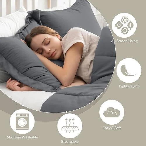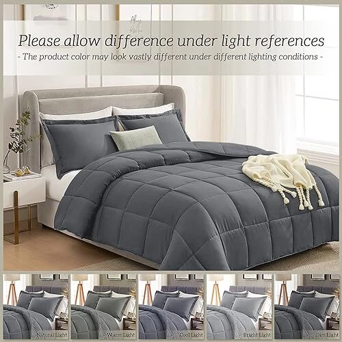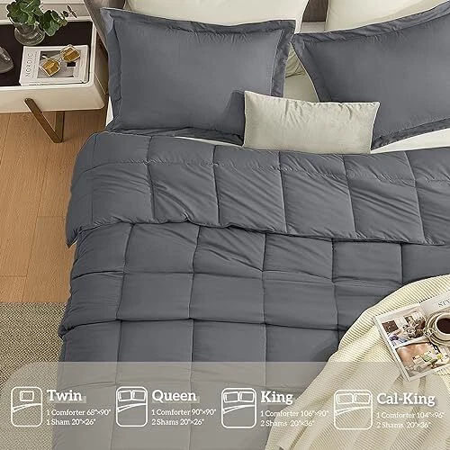 Return Policy Fast Delivery Trusted seller Queen Comforter Set Dark Grey, Comforters Queen Size Set Soft Lightweight Down Alternative Bed Comforter Full Size All Season 3 Pieces Bedding Sets,1 Comforter 90”x90“+2 Shams 20“x26” Product Description GREAT VALUE. The Dark Grey Queen size comforter set include 1 Full size comforter 90x90 inches, 2 pillow shams with invisible zipper 20x26 inches with 2 inches flange. The fabric is premium soft and breathable. The filling of the queen bedding comforters is whole piece microfiber filling, no clumping SIMPLE DESIGN REFRESH YOUR BED. The solid dark Grey Comforter Set can be reversed depending on your bed sheets and your mood. The Lightweight Bedding Comforter Set also has 4 corner tabs to anchor duvet cover and can be used as a duvet insert or a stand alone blanket comforter LIGHTWEIGHT FOR ALL-SEASON USE. The Lightweight Queen/Full Size Comforter Set can be used all the year round. It's light enough for summer when the night cool off and heavy enough for winter without feeling tied down into the bed. As the summer weight blanket is an ideal choice for your family and friends on Father's Day, Mother's Day, Birthday, Christmas, New Year, Housewarming or Back to School EASY CARE. The Down Alternative Comforter Set can be machine washable and dryable, very easy to care and save your money. T are 4 sizes available, Twin comforters set 68x90 inch with 1 pillow sham / Full queen comforter set 90x90 inch with 2 pillow shams / King comforter set 106x90 inch with 2 pillow shams / California king comforter set 104x96 inch with 2 pillow shams SATISFACTION GUARANTEE. We are confident you will love our Quilted Bed Comforter Set. If your sleeping experience with the 3 pcs comforter set isn’t absolutely exceptional, simply contact us for return Shipping Returns Payment Shipping Shipping is FREE to all addresses other than APO/PO boxes in the lower 48 states. All our stock ships from US-based warehouses. Shipped via USPS or UPS (depending on location and package weight) Unless stated otherwise, all orders will ship within 24-72 hours of your payment being processed. Check our feedback to see the great reviews of FAST shipping we offer. Returns Seller does not accept returns Payment We currently accept payment via eBay managed payments only. Once payment is cleared, we will dispatch your shipment within 1-3 business days. Please refer to the "Shipping" tab for more information regarding shipping speed to your destination.