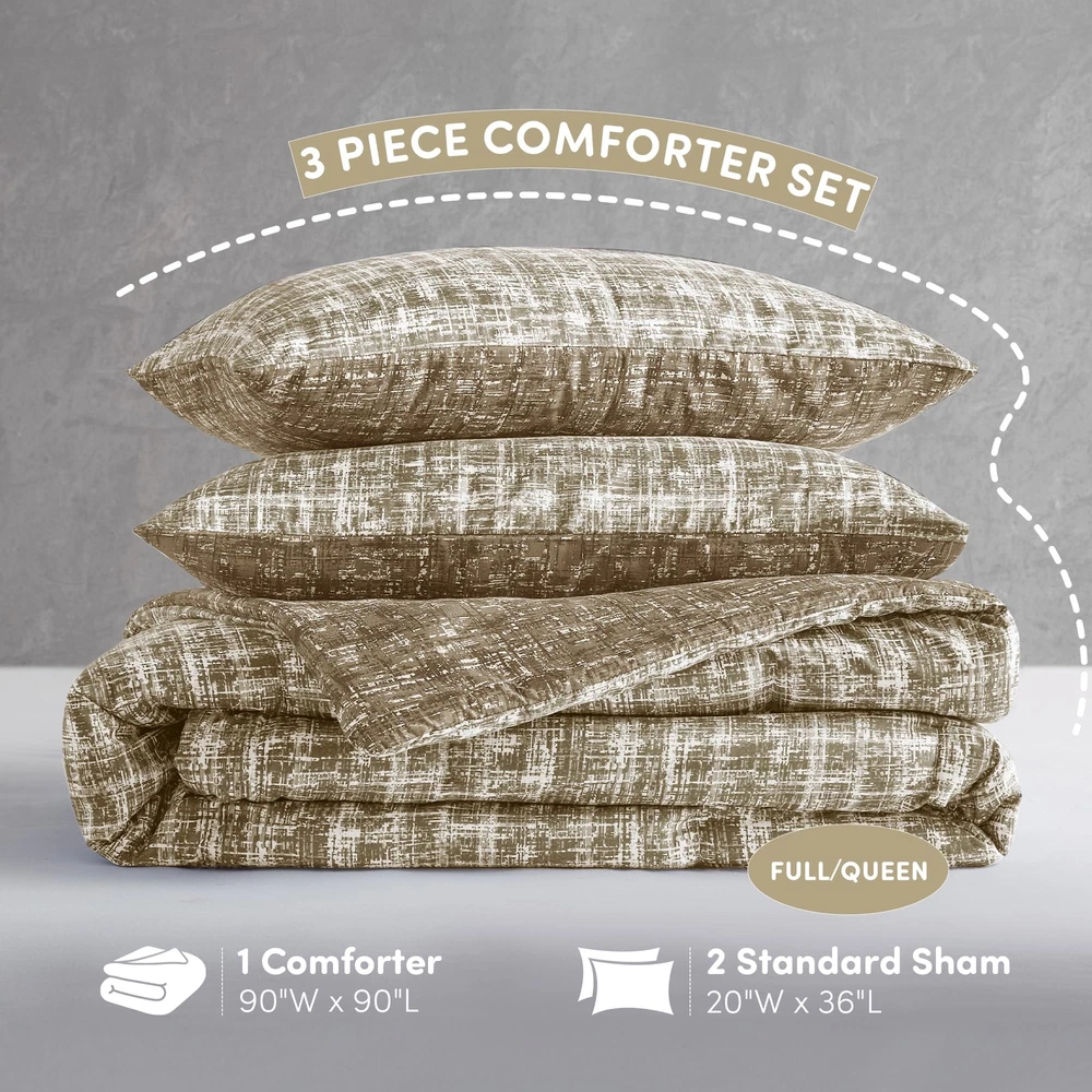 Step into the realm of modern sophistication with our Trendy Reversible bedding Set. This refined ensemble showcases a chic visual texture print that adds depth and dimension to your decor. Experience the ease of transformation with our Reversible Design. A simple flip of the cover or pillow shams breathes new life into your interior decor. The versatile all season lightweight and breathable design will keep you snug and stylish throughout the year. Our bedding is machine washable, offering the convenience of easy care. 【Modern Texture Print】: Elevate your bedroom with our Queen Comforter Set featuring a chic modern texture print. Its contemporary design brings a fresh, stylish look to any space 【Reversible Design】: This bedding set offers a gender-neutral aesthetic. Its versatile style transforms your living space effortlessly! Simply flip the comforter and shams to enjoy a new look without the hassle of a complete overhaul 【Quality and Durability】: Crafted with high-quality microfiber materials, this bedding set ensures long-lasting comfort and style. Experience the perfect blend of functionality and aesthetics for a cozy and inviting bedroom atmosphere 【Easy Care】: Keep your bedding fresh and clean with ease. This comforter set is machine washable, allowing for quick and convenient care. Say goodbye to the of complicated cleaning routines 【what included】1 Comforter:90x90" 2 Standard Shams:20x26+2"(2)