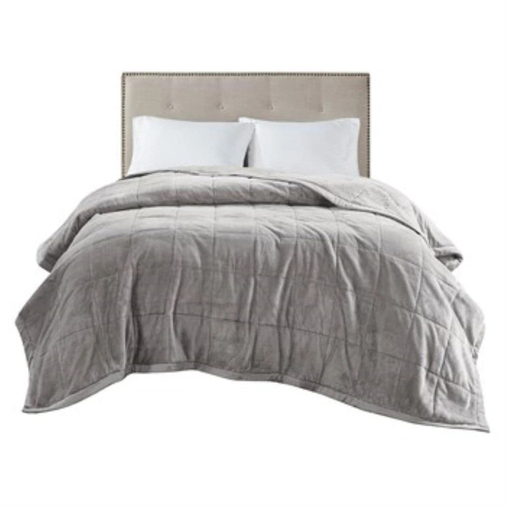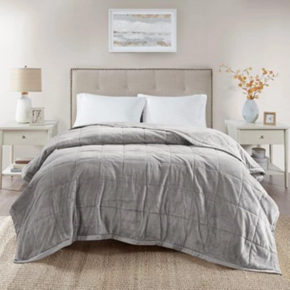 Wrap yourself in the soft plush cozy comfort with this reversible down alternative blanket. Treated with HeiQ smart temperature to help maintain a balanced temperature by retaining body heat when you're cold or wicking away moisture to cool you off when you're hot. This blanket features a soft plush face that reverses to a solid microfiber, creating an incredibly rich look and feel. Machine washable for easy care and perfect for all seasons. This blanket is also OEKO-TEX certified, meaning it does not contain any harmful substances or chemicals, ensuring quality comfort and wellness. Wrap yourself in the soft microfiber plush cozy comfort with this reversible blanket ideal for summer movie night on the couch / sofa Queen blanket treated with HeiQ smart temperature to help maintain a balanced temperature by retaining body heat when you're cold or wicking away moisture to cool you off when you're hot Soft Blanket OEKO-TEX certified for superior COMFORT and WELLNESS, as they are free from any substances or chemicals that may compromise quality Set include: 1 Blanket: 90"W x 90"L Machine washable. Use large capacity washer and dryer for best results. Cold/delicate cycle, low/no heat dry. Comes in compressed packaging, fluff up items as needed. Steam iron for wrinkles; pillow spot clean only