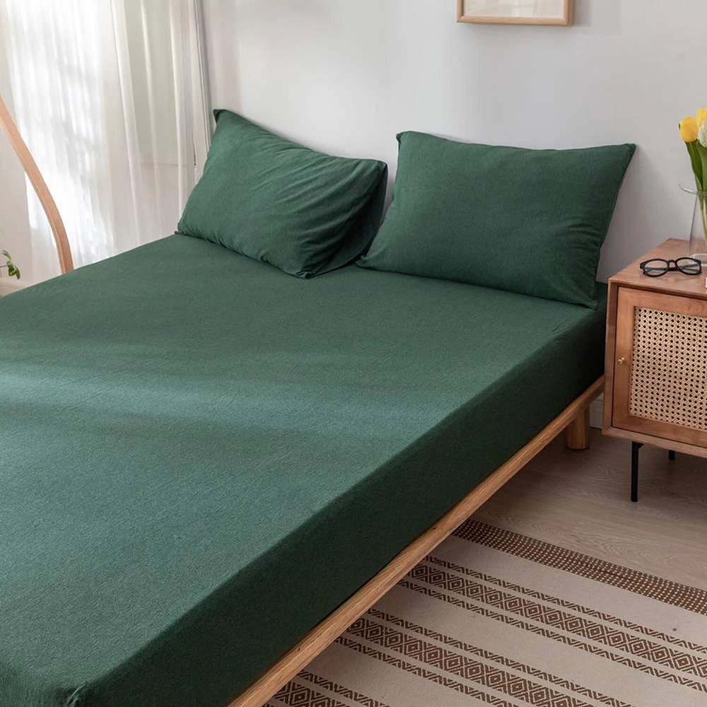 Queen Fitted Sheet - Jersey Knit Cotton Fitted Sheet - Fits Mattress Up to 15", Ultra Soft, Wrinkle Free, Breathable Comfy 3 Piece Deep Pockets Sheet, Forest Green Fitted Sheet and 2 Pillow Cases ✓ Free 60 Day Returns ✓ Free Express Shipping Description: Features: EXTRA SOFT JERSEY FITTED SHEET: Our jersey knit sheet feel just like your favorite t-shirt, super soft, lightweight, stain resistant and breathable. These queen fitted sheets are very strong and durable, fitted sheet for all season DEEP POCKET and EASY FIT: The deep pocket fitted sheet has elastic all around, easy to put on and take off, our fitted sheet fit mattresses up to around 15" deep, could cover the whole thick mattress well to avoid bunching or moving PERFECT GIFT FITTED SHEET: Forest green sheets great for any room like bedroom, guest room, kids room, RV, vacation home. Best gift idea for men and women, Moms and Dads, Valentine's, Mother's, Father's Day, Thanksgiving and Christmas EASY to CARE: Jersey fitted sheet can be cleaned easily, tumble dry low. DO NOT BLEACH, IRON or DRY CLEAN! Please shop with confidence, because no matter what difficulties occur, weve got you covered Product Details: Color: Forest Green Material: Cotton Size: Fitted Sheet-Queen Fabric Type: Jersey Cotton Pattern: Solid Color: Forest Green Material: Cotton Size: Fitted Sheet-Queen Fabric Type: Jersey Cotton Pattern: Solid Product Dimensions: 80"L x 60"W Brand: DONEUS Thread Count: 1200 Product Care Instructions: Machine Wash Number of Pieces: 1 Fitted Sheet Pocket Depth: 15 Inches Manufacturer: DONEUS Item Weight: 2.44 pounds Country of Origin: China Item model number: DONEUS089-dark green-queen Is Discontinued By Manufacturer: No Date First Available: June 9, 2017