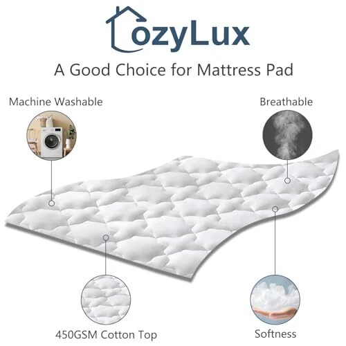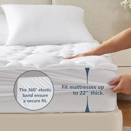 Return Policy Fast Delivery Trusted seller Queen Mattress Pad Cotton Deep Pocket Mattress Cover Non Slip Breathable and Soft Quilted Fitted Mattress Topper Up to 18" Thick Pillowtop 450GSM Bed Mattress Pad White Product Description 100% Cotton Top & Down Alternative Fill Soft and Breathable: The queen mattress pad has premium organic cotton fabric , breathable and sweat-absorbent. And also the quilted pad is filled with extremely soft down alternative polyester which is friendly to those sneezing with goose down and feather bedding; Moderate thickness is also suitable for side sleepers Safe & Sound: Our product has been certified according to rigorous OEKO-TEX Standard 100 requirements that mean the product satisfies the highest criterion of testing for harmful chemicals and has been found to be harmless for humans. Elaborate Design: Professional quilting technology ensures durable structure that provides extra long-lasting service. The chic hexagram pattern can add a fresh touch to any bedroom's look. Elastic deep pocket stretches to fit up to 18" deep mattress which can always keep non slip no matter how you twist and turn in your bed Easy Care: The mattress pads/covers are machine washable which can save you more time and energy. For year round softness and prevent pilling up, it's highly recommend to wash it in the gentle cycle with cold water, sun-dry or tumble dry in low when needed. Let our cotton mattress pads keep providing you and your family with cozy sleeping Satisfactory Service: As your satisfaction is of the utmost importance to us. is committed to offering you premium products and a caring service. Please feel free to contact us if you have any questions about our products. We would try our best to solve problems as soon as possible Shipping Returns Payment Shipping Shipping is FREE to all addresses other than APO/PO boxes in the lower 48 states. All our stock ships from US-based warehouses. Shipped via USPS or UPS (depending on location and package weight) Unless stated otherwise, all orders will ship within 24-72 hours of your payment being processed. Check our feedback to see the great reviews of FAST shipping we offer. Returns Seller does not accept returns Payment We currently accept payment via eBay managed payments only. Once payment is cleared, we will dispatch your shipment within 1-3 business days. Please refer to the "Shipping" tab for more information regarding shipping speed to your destination.
