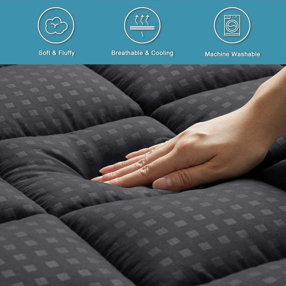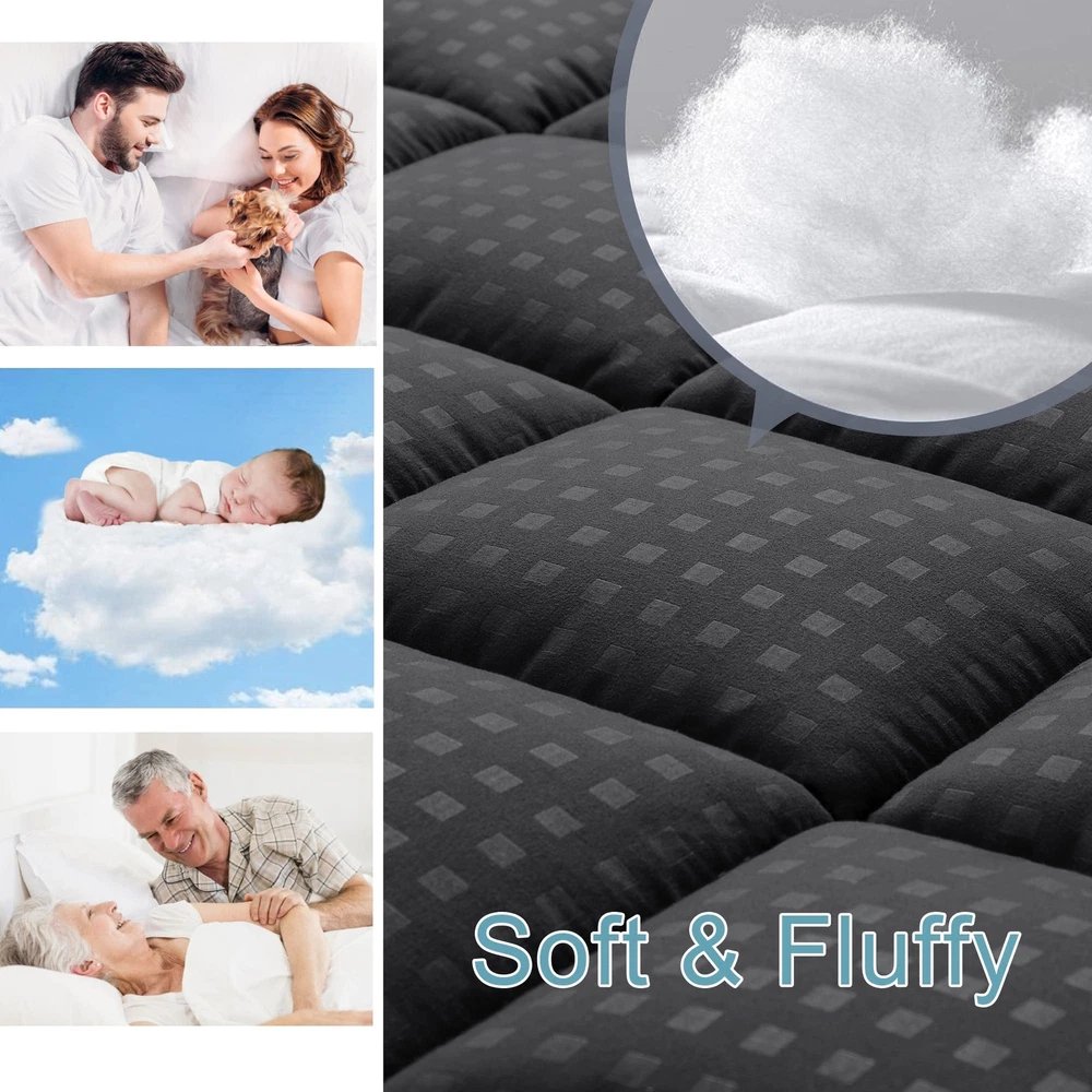 Queen Mattress Pad Quilted Fitted Mattress Protector Cooling Pillow Top Mattress Cover Breathable Fluffy Soft Mattress Topper with 8-21" Deep Pocket, Black ❤Breathable & Cooling Mattress Pad❤: The microfiber top makes the surface feel cooling and breathable. The luxury mattress pad is as breathable as clouds. It makes you feel super comfortable without extra heat. Silent protection that doesn't disrupt your valuable sleep, makes you sleep well all night ❤Soft & Fluffy Mattress Pad❤: Queen Mattress Pad (60"x80") with microfiber fabric is exceptionally soft and comfortable. The microfiber filling's good resilience makes this mattress pad fluffy and provides an extraordinary sleeping environment that will change your sleep for the better ❤Mattress Pad with Deep Pocket❤: The 360° fabric sides easily stretch to fit mattresses up to 21" thick. It can be easily placed on most mattresses, whether it's a regular mattress, a waterbed, or memory. It will never slide no matter how you twist and turn in your bed ❤Durable Mattress Pad❤: Quilted mattress pad cover is durable. Square jacquard prevents the filling running around. Compared to the normal quilting seam, this new shape is more supportive and soft ❤Machine Washable Mattress Pad❤: Machine washable under gentle cycle with cold water. Tumble dry on low. We provide a 90-day satisfaction guarantee. If you are not satisfied with the product, please feel free to contact us to obtain a satisfactory solution Shipping We offer FREE shipping on all orders! We ship within Three business days of payment, usually sooner. We use a selection of shipping services such as UPS, FedEx, USPS etc. We only ship to the lower 48 states, no APO/FPO addresses or PO Boxes allowed. Local pickups and combined shipping options are not provided at this time. Return You can return a product for up to 30 days from the date you purchased it. Any product you return must be in the same condition you received it and in the original packaging. Please keep the receipt. Payment We accept payment by any of the following methods: PayPal Please pay as soon as possible after winning an auction, as that will allow us to post your item to you sooner! Feedback Customer satisfaction is very important to us. If you have any problem with your order, please contact us and we will do our best to make you satisfied. Contact Us If you have any queries, please contact us via ebay. We usually respond within 24 hours on weekdays. Please visit our eBay store to check out other items for sale! Thank you for shopping at our store.