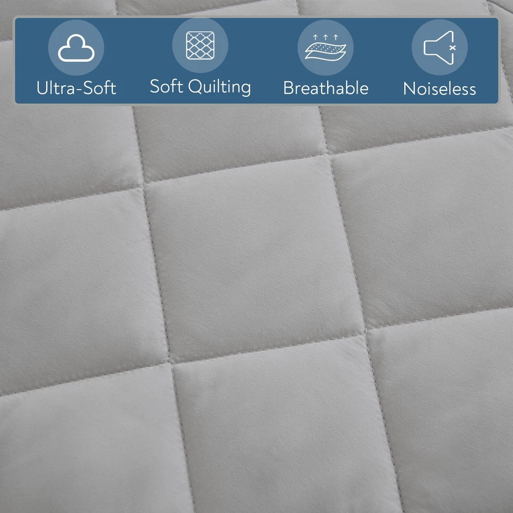 Ultra-soft and Breathable: The queen mattress pad is made of breathable polyester fabric, the microfiber filling's good resilience makes this mattress pad fluffy and provides extra comfortable sleep and protection. Noiseless: The air mattress topper queen is long lasting and is significant for keeping your mattress free of stains. Bottom layer use soft polyester fabric, that won't make any crinking sounds, providing you with a deep and restful night's sleep. Size & Deep Pocket: Fits the queen size air mattress (60 x 80 inches). The 360° fabric sides easily stretch to fit mattresses up to 23" thick. It can be easily placed on most mattresses, whether it's a regular mattress, an air mattress, or memory. It will never slide no matter how you twist and turn in your bed. Easy Care & Machine Washable: Thanks to the soft polyester cover and neat stitching, this air mattress topper offers improved practicality to withstand wear and tear. Machine washable under gentle cycle with cold water. Tumble dry on low. Satisfaction Service: We will do our best to serve you until you are satisfied. If for any reason you are not satisfied with your air mattress pad, please tell us directly.