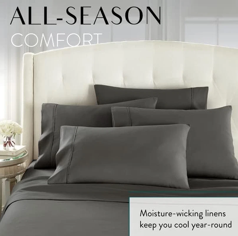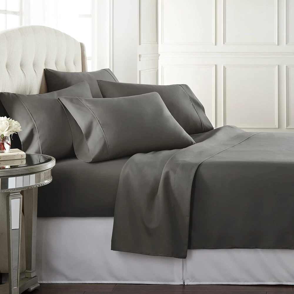 Style: Modern Product Dimensions: 107.99 x 107.99 x 0.04 inches Color: Gray Item dimensions L x W x H: 107.99 x 107.99 x 0.04 inches Size: Does not apply Brand: Does not apply Item model number: LLTIBSQ03 UPC: 744759701497 Is Discontinued By Manufacturer: No gtin13: 744759701497 Closure Type: Envelope Number of Pieces: 6 Seasons: All Pattern: Solid Fitted Sheet Pocket Depth: 1 Millimeters Pillowcase Quantity: 4 Special Feature: Cooling, Lightweight, Fade Resistant, Deep Pocket, Breathable Theme: Winter Included Components: Pillowcase, Fitted Sheet, Flat Sheet Item Weight: 2.51 pounds Thread Count: 1800 Unit Count: 1 Count Type: Does not apply Age Range (Description): All Ages Product Care Instructions: Machine Wash Material: Microfiber