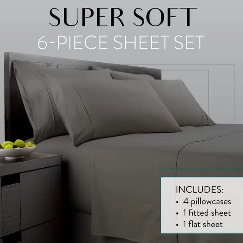 Queen Sheet Set 6 Piece Hotel Quality Bed Sheet W/ 4 Pillowcases - Microfiber Sh