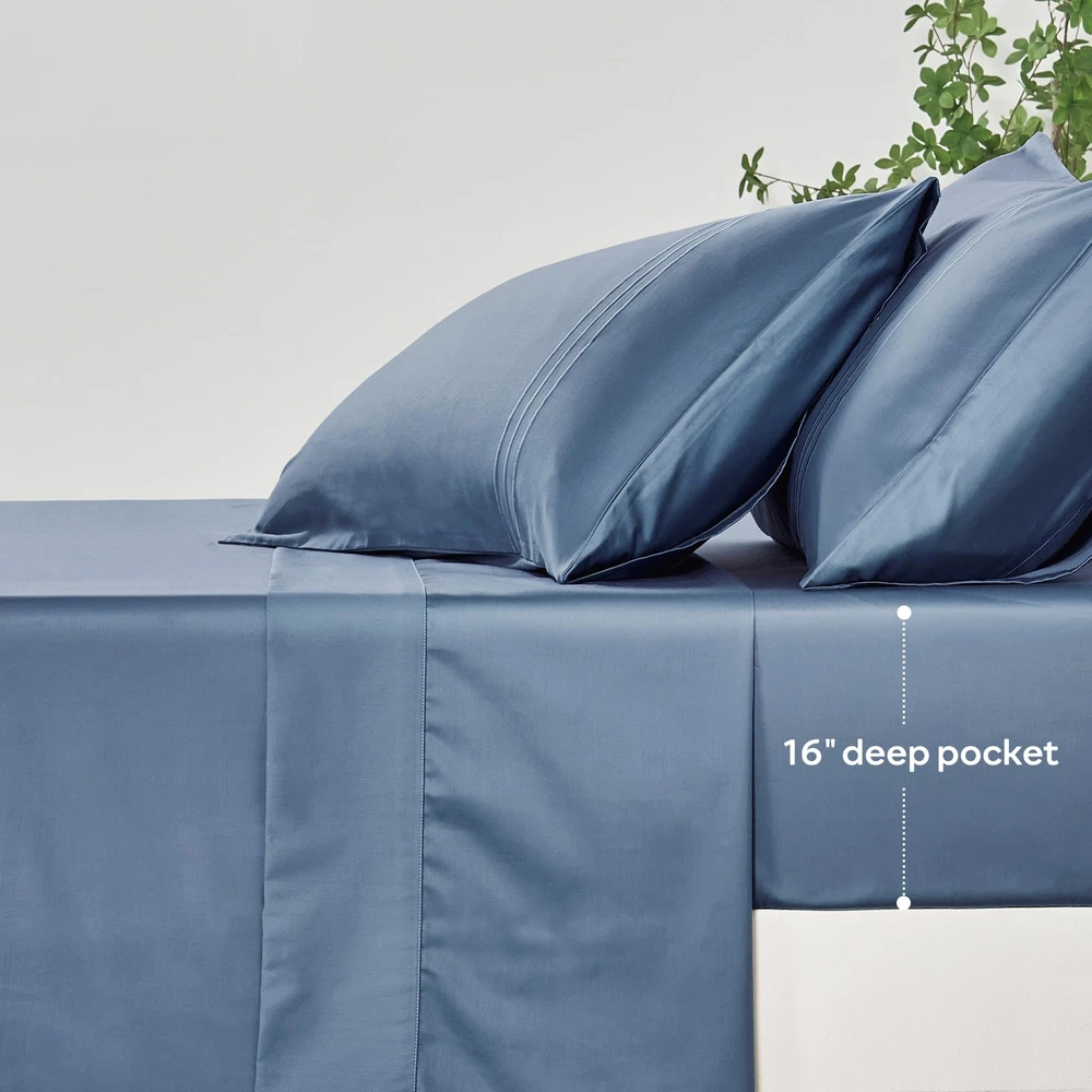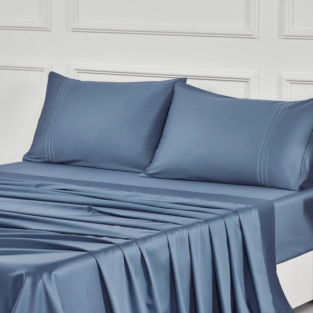 Queen Sheet Sets Blue - 400 Thread Count 100% Cotton Sheets, 4 Pieces Silkly ...