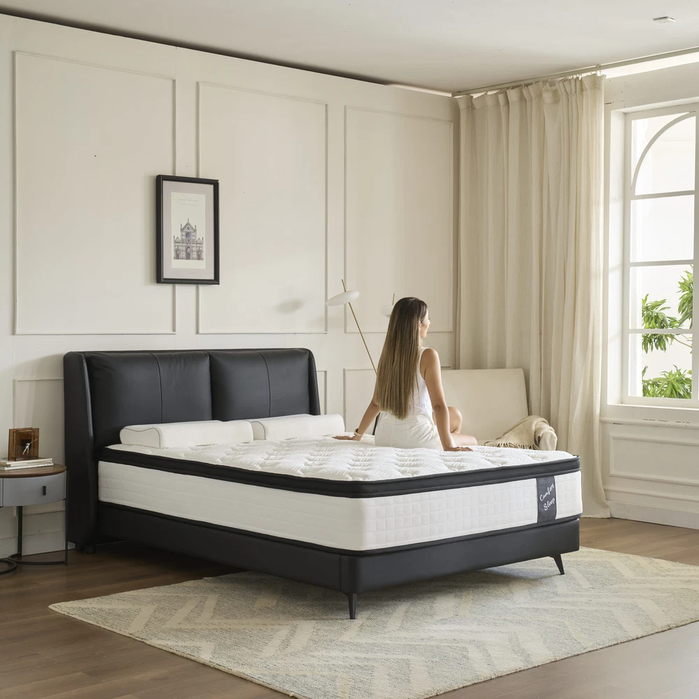 ① Our mattress is crafted with the utmost attention to comfort and quality, providing you with an exceptional sleeping experience. ② Exceptional Comfort Featuring a 3-inch layer of ultra-comfortable sponge, it offers a plush and cozy surface that cradles your body, relieving pressure points and ensuring a deep, rejuvenating sleep. Whether you sleep on your back, side, or stomach, this mattress adapts to your body shape, providing optimal support and comfort throughout the night. ③ Enhanced Breathability The mattress is designed with advanced breathable materials that promote air circulation. This allows heat and moisture to dissipate quickly, keeping you cool and dry during sleep. The breathable construction helps regulate your body temperature, preventing overheating and creating a more comfortable sleeping environment. ④ With its combination of a luxurious 3-inch sponge and excellent breathability, our mattress is the perfect choice for those who value a good night's sleep. Invest in your sleep quality and wake up refreshed and energized every morning.