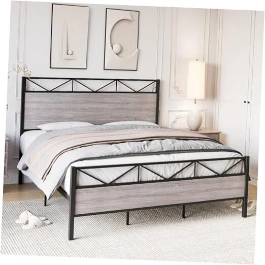 Return Policy Fast Delivery Trusted seller Queen Size Bed Frame with Headboard, Industrial Platform Queen Bed Frame with 14 Strong Metal Slats Support, 11'' Under-Bed Storage, No Noise, Easy Assembly, Grey Product Description Vintage Bed Frame - MDF board & black metal bed frame take an industrial look and rustic style. This retro queen size bed frame is a sleek finishing decoration to your bedroom, suitable for most bedroom styles Sturdy & Durable - Constructed with 9 metal legs and 14 heavy-duty steel slats, the weight capacity of this queen size bed frame can stand max up to 1000lbs. The Industrial wooden grain headboard and footboard provide better support to your mattress Noise Free - The non-slip thick square metal frame and sponge strips on the central support pole help minimize noise, helping you enjoy quiet and sweet dreams Maximize Storage - With 11 inches of clearance underneath, our bed frame offers ample storage for various items and provides a neat solution for storing seldom-used belongings High Quality Bed Frame - Combining safety, sturdiness, easy assembly, maximized storage, and noise-free design, offers the perfect combination of functionality and comfort for your bedroom. Experience a new level of comfort and practicality with our versatile bed frame Shipping Returns Payment Shipping Shipping is FREE to all addresses other than APO/PO boxes in the lower 48 states. All our stock ships from US-based warehouses. Shipped via USPS or UPS (depending on location and package weight) Unless stated otherwise, all orders will ship within 24-72 hours of your payment being processed. Check our feedback to see the great reviews of FAST shipping we offer. Returns Seller does not accept returns Payment We currently accept payment via eBay managed payments only. Once payment is cleared, we will dispatch your shipment within 1-3 business days. Please refer to the "Shipping" tab for more information regarding shipping speed to your destination.
