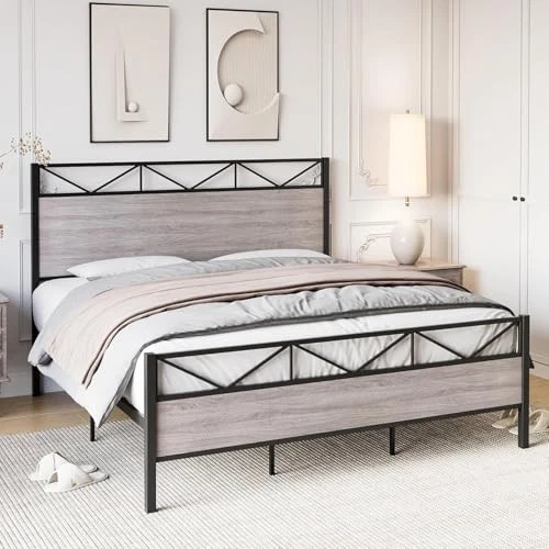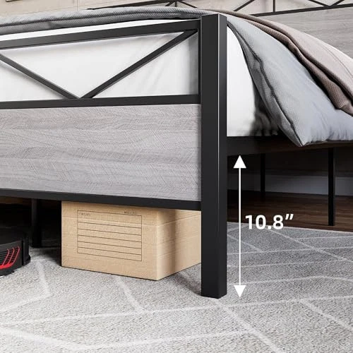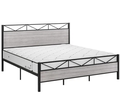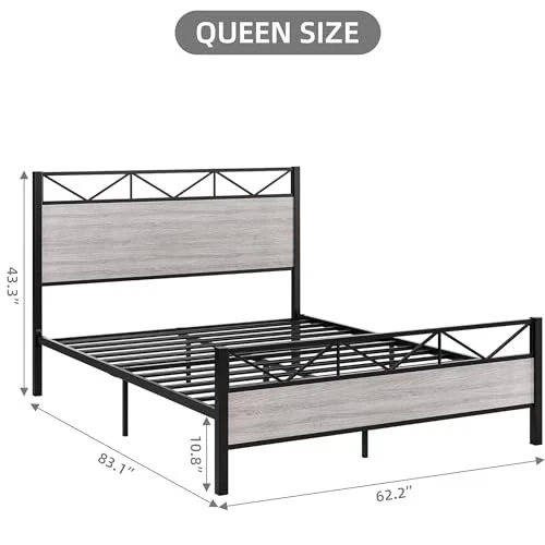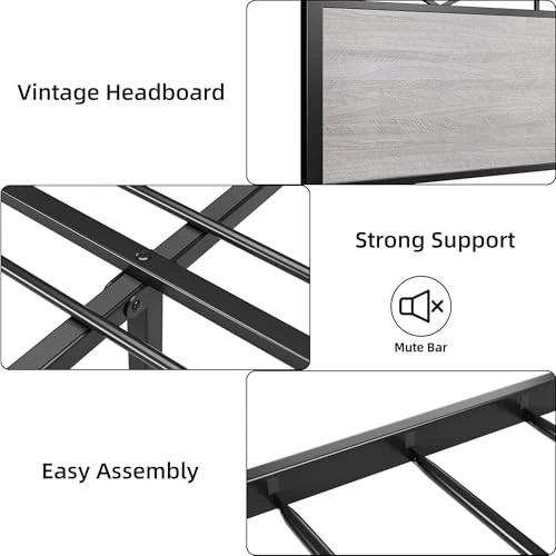 Queen Size Bed Frame with Headboard, Industrial Platform Queen Bed Frame with