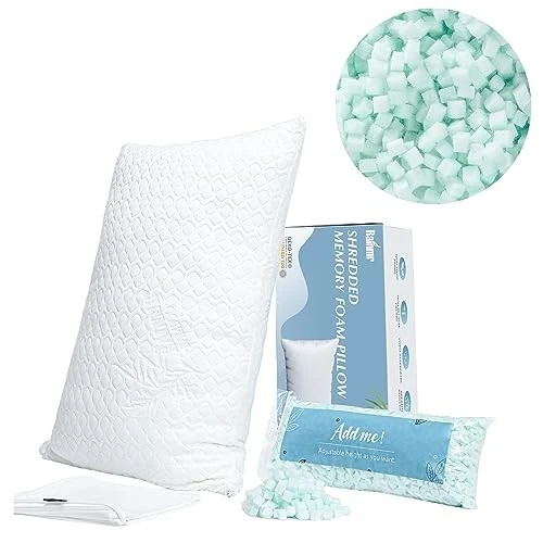 Queen Size Bed Pillow for Sleeping Shredded Memory Foam Queen 1-Pack White