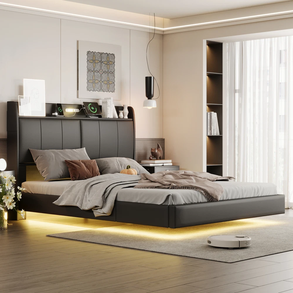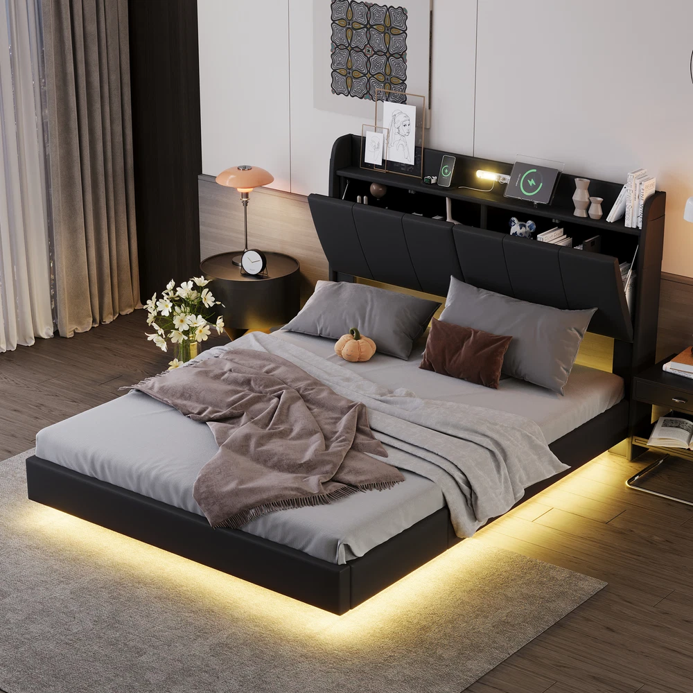 Brand Unbranded Item Length 63.39 Item Width 23.82 Item Height 6.69 Color Black Frame Material Wood Type BED FRAME Compatible Mattress Size As described Diamond-ring-1 Simple life Queen Size Floating Bed Frame with Storage Headboard, Modern Upholstered Platform Bed with Touch Sensor Night Light and USB Charger, Black Unique Floating Design: The unique hidden bed foot design is different from the traditional bed frame, giving people a dreamy and light feeling that the bed is floating above the ground. The floating design and LED lights complement each other, creating a sense of modern technology and bringing a unique and novel visual experience. Practical and Beautiful: This bed is made of high-quality MDF and Plywood, which is sturdy and durable. And it has a storage upholstered headboard and it is soft and comfortable, and fits in well with home decoration. Touch sensor Nightlight: The bed is equipped with a touch sensor nightlight on the headboard, providing a convenient feature for navigating around the bed during nighttime. Versatile bed frame: The headboard has 2 USB ports, making it very convenient for you to charge your phone, tablet, headphones and other electronic.The LED lights can be controlled by remote control.There are small pockets on both sides of the bedside where you can place mobile phones, books, charging cables, headphones, etc. Dimensions: Overall Dimension: 88.2 x 62.2x 43.7 inches (L x W x H) . Suitable for mattress Queen size.(Mattress is not included) Bed weight capacity: 660lbs. Storage shelf capacity: 22lbs. Queen Size Floating Bed Frame with Lights, Modern Platform Bed with storage upholstered headboard This bed is designed with several convenient features to enhance your sleeping experience. The touch sensor light on the headboard provides illumination for navigating around the bed at night without disturbing your partner. With USB charging ports, you can easily charge your devices while relaxing in bed. The headboard can be opened for storage, where you can place clothes, blankets, pillows, etc. There are small pockets on both sides of the bed for mobile phones, headphones, charging cables, etc. With these thoughtful features, this bed combines functionality and comfort to elevate your bedroom space. Features: Product Type Bed Color Black Product Material MDF+Plywood+PU+Metal Size Queen Number of Slats 14 Detail Product Dimension Please refer to the Size image Weight Capacity Bed: 660 lbs Storage shelf:22 lbs Recommended Mattress Thickness 8-10" Assembly Required Yes Country of Origin China Item Specifics Brand Unbranded Item Length 63.39 Item Width 23.82 Item Height 6.69 Color Black Frame Material Wood Type BED FRAME Compatible Mattress Size As described Payment Returns Diamond-ring-1 Simple life DESCRIPTION PAYMENT SHIPPING RETURN POLICY CONTACT US Shop Category Store Home Other Hot Item Delivery New List Item Help & Info Payment Policy Shipping Policy Return Policy FAQ About Us Queen Size Floating Bed Frame with Storage Headboard, Modern Upholstered Platform Bed with Touch Sensor Night Light and USB Charger, Black Unique Floating Design: The unique hidden bed foot design is different from the traditional bed frame, giving people a dreamy and light feeling that the bed is floating above the ground. The floating design and LED lights complement each other, creating a sense of modern technology and bringing a unique and novel visual experience. Practical and Beautiful: This bed is made of high-quality MDF and Plywood, which is sturdy and durable. And it has a storage upholstered headboard and it is soft and comfortable, and fits in well with home decoration. Touch sensor Nightlight: The bed is equipped with a touch sensor nightlight on the headboard, providing a convenient feature for navigating around the bed during nighttime. Versatile bed frame: The headboard has 2 USB ports, making it very convenient for you to charge your phone, tablet, headphones and other electronic.The LED lights can be controlled by remote control.There are small pockets on both sides of the bedside where you can place mobile phones, books, charging cables, headphones, etc. Dimensions: Overall Dimension: 88.2 x 62.2x 43.7 inches (L x W x H) . Suitable for mattress Queen size.(Mattress is not included) Bed weight capacity: 660lbs. Storage shelf capacity: 22lbs. Queen Size Floating Bed Frame with Lights, Modern Platform Bed with storage upholstered headboard This bed is designed with several convenient features to enhance your sleeping experience. The touch sensor light on the headboard provides illumination for navigating around the bed at night without disturbing your partner. With USB charging ports, you can easily charge your devices while relaxing in bed. The headboard can be opened for storage, where you can place clothes, blankets, pillows, etc. There are small pockets on both sides of the bed for mobile phones, headphones, charging cables, etc. With these thoughtful features, this bed combines functionality and comfort to elevate your bedroom space. Features: Product Type Bed Color Black Product Material MDF+Plywood+PU+Metal Size Queen Number of Slats 14 Detail Product Dimension Please refer to the Size image Weight Capacity Bed: 660 lbs Storage shelf:22 lbs Recommended Mattress Thickness 8-10" Assembly Required Yes Country of Origin China Item Specifics Brand : Unbranded Item Length : 63.39 Item Width : 23.82 Item Height : 6.69 Color : Black Frame Material : Wood Type : BED FRAME Compatible Mattress Size : As described Payment Returns All rights reserved.