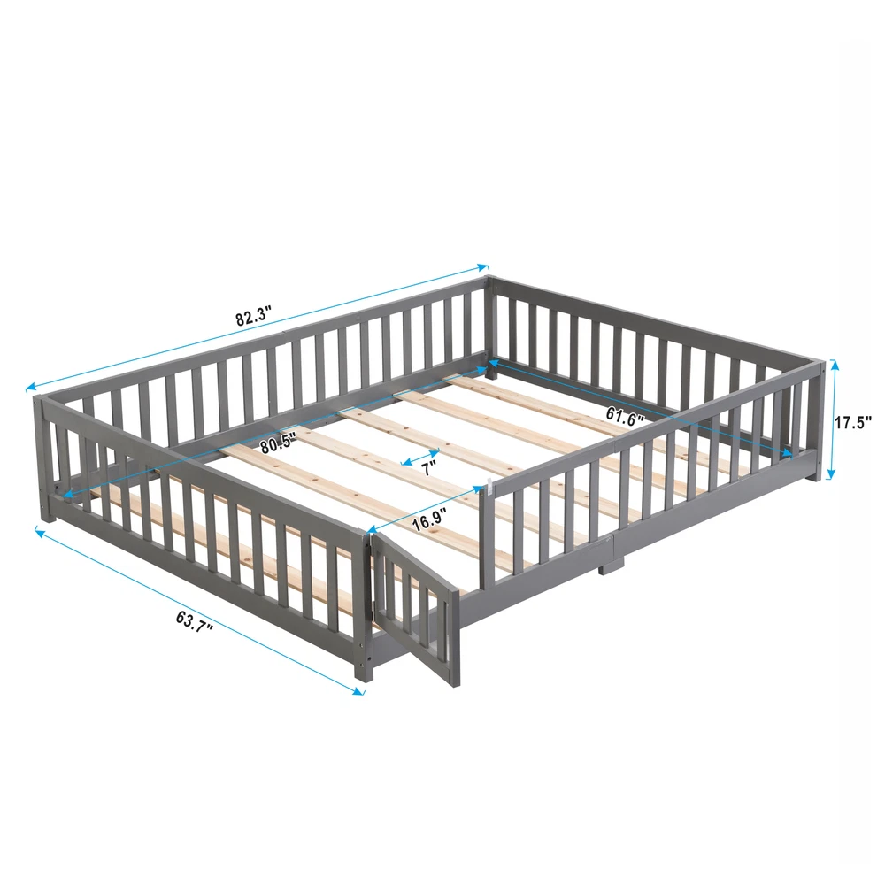 Brand Unbranded Item Length 68.9 Item Width 19.88 Item Height 7.48 Color Gray Frame Material Wood Type BED FRAME Compatible Mattress Size As described Diamond-ring-1 Simple life Queen Size Floor Bed with Door,Solid Wood Platform Bed Frame with Fence,Suitable for children,Pine Wood,Gray Floor Bed with Safety Guardrails: The toddler's floor bed, positioned close to the ground with surrounding solid wood safety guardrails and a low-profile design, ensures enhanced safety within their sleeping environment. Switched Design for the Door: A small door has been added that can be opened or closed, enhancing the safety features of this queen floor bed. Encouraging Independent Sleeping Habits: With its low height design, this floor bed allows children to enter and exit on their own. Additionally, you have the option to remove the slats if necessary; providing not only a comfortable sleep area but also doubling as a play space for your children. Robust Construction: Crafted from premium pine wood and high-quality engineered wood materials, ensuring sturdiness and durability while offering robust protection for your child. Item Specifics Brand Unbranded Item Length 68.9 Item Width 19.88 Item Height 7.48 Color Gray Frame Material Wood Type BED FRAME Compatible Mattress Size As described Payment Returns Diamond-ring-1 Simple life DESCRIPTION PAYMENT SHIPPING RETURN POLICY CONTACT US Shop Category Store Home Other Hot Item Delivery New List Item Help & Info Payment Policy Shipping Policy Return Policy FAQ About Us Queen Size Floor Bed with Door,Solid Wood Platform Bed Frame with Fence,Suitable for children,Pine Wood,Gray Floor Bed with Safety Guardrails: The toddler's floor bed, positioned close to the ground with surrounding solid wood safety guardrails and a low-profile design, ensures enhanced safety within their sleeping environment. Switched Design for the Door: A small door has been added that can be opened or closed, enhancing the safety features of this queen floor bed. Encouraging Independent Sleeping Habits: With its low height design, this floor bed allows children to enter and exit on their own. Additionally, you have the option to remove the slats if necessary; providing not only a comfortable sleep area but also doubling as a play space for your children. Robust Construction: Crafted from premium pine wood and high-quality engineered wood materials, ensuring sturdiness and durability while offering robust protection for your child. Item Specifics Brand : Unbranded Item Length : 68.9 Item Width : 19.88 Item Height : 7.48 Color : Gray Frame Material : Wood Type : BED FRAME Compatible Mattress Size : As described Payment Returns All rights reserved.