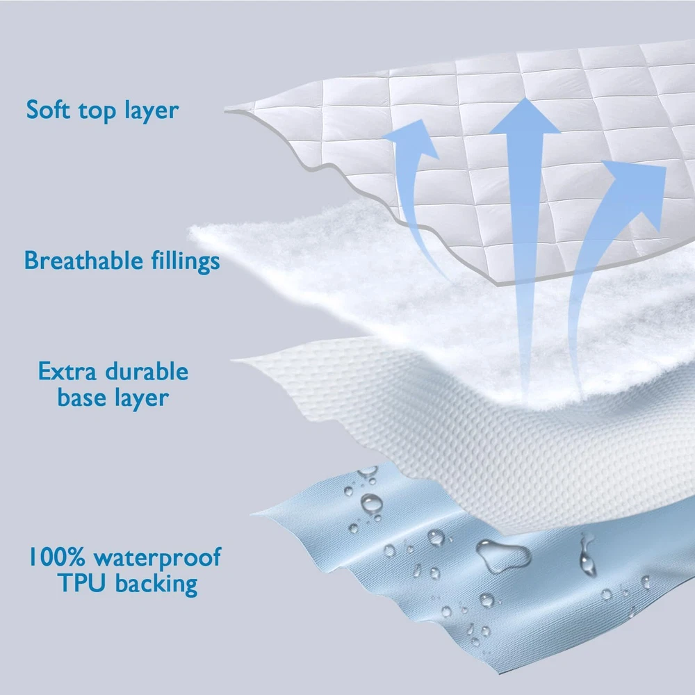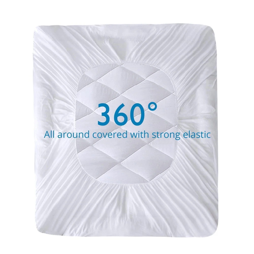 Premium Mattress Protection: Our queen size mattress protector shields your mattress from sweat, spills, and stains, keeping it pristine. It is suitable for for new mothers, pets and the elderly, ensuring a clean and healthy sleeping environment 100% Waterproof Assurance: This waterproof mattress protector uses premium TPU backing to create a moisture barrier, ensuring your mattress stays dry. Ideal for families with babys and pets, providing peace of mind Softness & Breathability: Crafted with microfiber and thick filling, our mattress pad offers unparalleled softness and breathability. Experience a luxurious sleep every night with our comfortable and cozy mattress cover Deep Pocket: The queen mattress cover features deep pockets and elasticated corners, fitting mattresses from 6 to 21 inches thick. This fitted sheet design ensures a secure fit and wrinkless Effortless Maintenance: Our mattress protector is machine washable and can endure over 90 cycles of gentle washing. Easy to clean and maintain, it’s suitable for busy households with frequent spills
