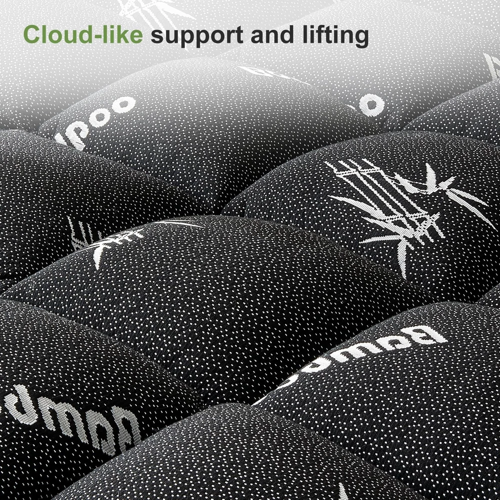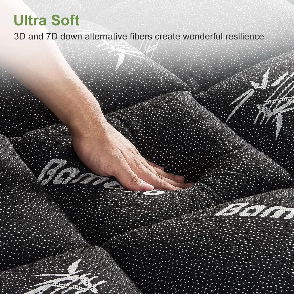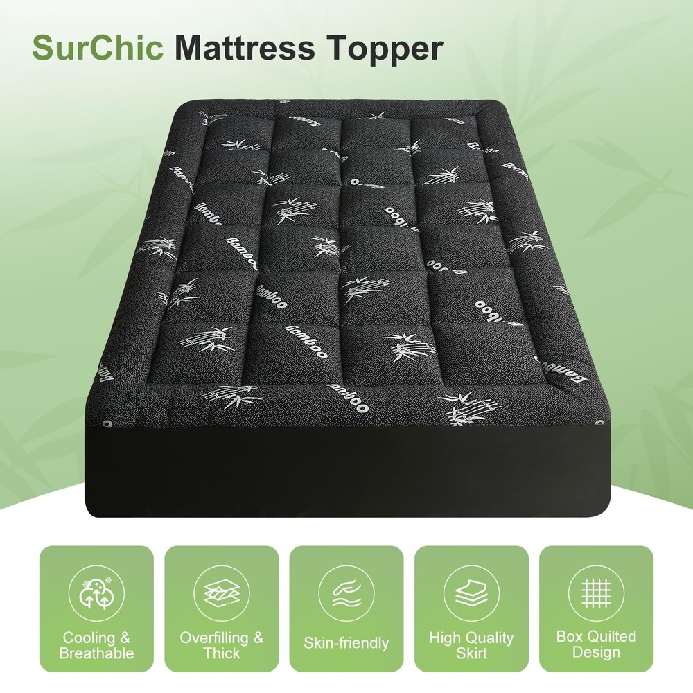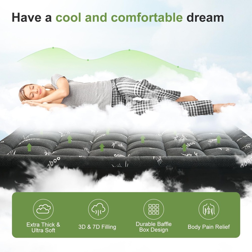 Queen Size Mattress Topper Viscose Derived from Bamboo, Soft Thick Pillow Top Mattress Pad Cover for Back Pain, Overfilled Cooling Mattress Protector with 8-21 Inch Deep Pocket, Dark Grey Breathable & Comfort - The cloud-like surface with 40% Viscose Made from Bamboo and 60% Polyester made Three Dimensional Structure that makes the air circulate, gives superior comfort and cooling without extra heat and sweat caused by memory foam or traditional mattresses Luxury Soft Mattress Topper - Mattress topper uses snow down alternative filling that can make you feel soft & fluffy and provide back pain relief and a layer of full body support. Viscose made from bamboo surface can refresh your mattress, distribute heat evenly, and provide a more skin-friendly feel No-Slip & Deep Pocket - Stretchable knitted skirt design is deep enough to fit securely mattress depths 8"-21" and also suitable for air mattresses. However you toss and turn, the corners just stay on place and don’t come up from the mattress High Quality & Easy Care - Our thick mattress pad is durable, no risk being ripped even with frequently washing. Machine wash separately in cold water. Tumble dry on low heat or line dry. Do not bleach. Wash them regularly to keep your mattress clean and free of stains keeps it smelling fresh and helps you to keep you healthier Customer Satisfaction - We provide a 365-day satisfaction . If you are not satisfied with the product during use, please the team directly or us to obtain a satisfactory solution