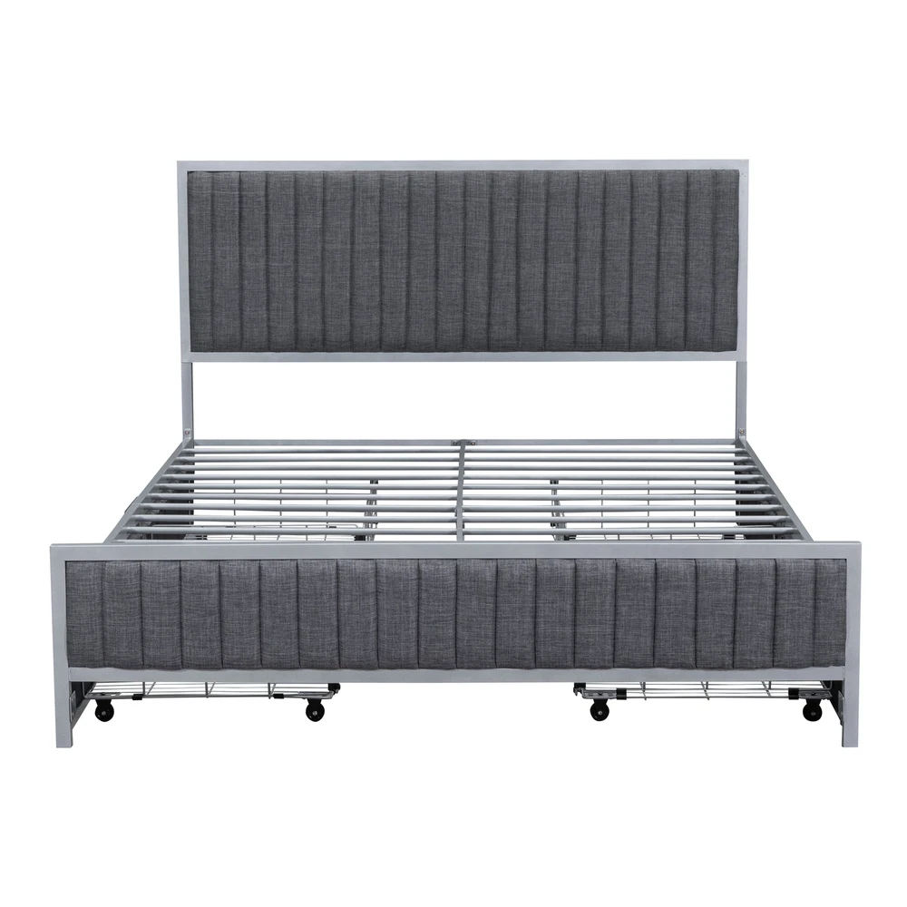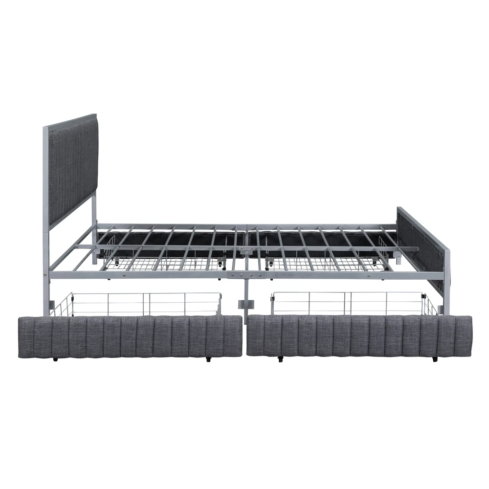 Brand Unbranded Item Length 63.58 Item Width 23.23 Item Height 8.46 Color Gray Frame Material Linen Type BED FRAME Compatible Mattress Size As described Diamond-ring-1 Simple life Queen Size Metal Frame Upholstered Bed with 4 Drawers, Linen Fabric, Gray [Elegant Design] Upholstered in carefully-selected linen fabric, and with stylish metal frame, this platform bed not only suits any home décor, but is timeless in its design. [Maximized space]The platform bed with 4 big drawers can easily be pulled in and out for maximum storage space, perfect for organizing anything from clothes and bed linens to toys and games. Such a versatile piece, bringing functionality, versatility, and style to your home. [High Quality Build] The heavy duty metal framework construction provides superior durability and stability allowing your bed to last you for years to come. Complete with thick built-in metal slats for optimum anti-sagging mattress support. [Easy Assembly] This upholstered platform bed is delivered in 1 package, along with the installation manual and full set of hardware necessary to guide you through the process of assembly, and the bed will definitely be assembled conveniently. [Dimensions] Overall Product Dimension: 81.7"L x 62"W x 41.7"H. Mattress not included. Some assembly is required, although we have provided clear instructions and tools. This beautiful metal frame upholstered platform Bed features upholstered headboard that adds a contemporary chic look to your bedroom and filled in thick foam to add extra comfort. Sturdy metal frame construction and a metal slat system to add extra stability and safety.And the 4 big drawers underneath the bed can easily be pulled in and out for maximum storage space, perfect for organizing anything from clothes and bed linens to toys and games.This beautiful Upholstered Platform Bed will certainly be a beautiful and practical piece in your bedroom. Weight & Dimensions Overall Product Dimension 81.7"L x 62"W x 41.7"H Detail Product Dimension Please refer to the Size image Number of Package 1 Package Dimension Please refer to the Specification Overall Product Weight 106.04 LBS Package Weight Please refer to the Specification Weight Capacity 800LBS Recommended Mattress Thickness 8" Specifications Product Type Upholstered Platform Bed Size Queen Color Beige/Gray Product material Linen+Metal Level of Assembly Partial assembly Box Spring Required No Mattress Included No Number of Slats 14 Country of Origin China Notes: Manual measurement has been used,there may be some reasonable error.All the pictures are taken by actual samples, slight chromatic aberration may occur due to lighting or display Item Specifics Brand Unbranded Item Length 63.58 Item Width 23.23 Item Height 8.46 Color Gray Frame Material Linen Type BED FRAME Compatible Mattress Size As described Payment Returns Diamond-ring-1 Simple life DESCRIPTION PAYMENT SHIPPING RETURN POLICY CONTACT US Shop Category Store Home Other Hot Item Delivery New List Item Help & Info Payment Policy Shipping Policy Return Policy FAQ About Us Queen Size Metal Frame Upholstered Bed with 4 Drawers, Linen Fabric, Gray [Elegant Design] Upholstered in carefully-selected linen fabric, and with stylish metal frame, this platform bed not only suits any home décor, but is timeless in its design. [Maximized space]The platform bed with 4 big drawers can easily be pulled in and out for maximum storage space, perfect for organizing anything from clothes and bed linens to toys and games. Such a versatile piece, bringing functionality, versatility, and style to your home. [High Quality Build] The heavy duty metal framework construction provides superior durability and stability allowing your bed to last you for years to come. Complete with thick built-in metal slats for optimum anti-sagging mattress support. [Easy Assembly] This upholstered platform bed is delivered in 1 package, along with the installation manual and full set of hardware necessary to guide you through the process of assembly, and the bed will definitely be assembled conveniently. [Dimensions] Overall Product Dimension: 81.7"L x 62"W x 41.7"H. Mattress not included. Some assembly is required, although we have provided clear instructions and tools. This beautiful metal frame upholstered platform Bed features upholstered headboard that adds a contemporary chic look to your bedroom and filled in thick foam to add extra comfort. Sturdy metal frame construction and a metal slat system to add extra stability and safety.And the 4 big drawers underneath the bed can easily be pulled in and out for maximum storage space, perfect for organizing anything from clothes and bed linens to toys and games.This beautiful Upholstered Platform Bed will certainly be a beautiful and practical piece in your bedroom. Weight & Dimensions Overall Product Dimension 81.7"L x 62"W x 41.7"H Detail Product Dimension Please refer to the Size image Number of Package 1 Package Dimension Please refer to the Specification Overall Product Weight 106.04 LBS Package Weight Please refer to the Specification Weight Capacity 800LBS Recommended Mattress Thickness 8" Specifications Product Type Upholstered Platform Bed Size Queen Color Beige/Gray Product material Linen+Metal Level of Assembly Partial assembly Box Spring Required No Mattress Included No Number of Slats 14 Country of Origin China Notes: Manual measurement has been used,there may be some reasonable error.All the pictures are taken by actual samples, slight chromatic aberration may occur due to lighting or display Item Specifics Brand : Unbranded Item Length : 63.58 Item Width : 23.23 Item Height : 8.46 Color : Gray Frame Material : Linen Type : BED FRAME Compatible Mattress Size : As described Payment Returns All rights reserved.