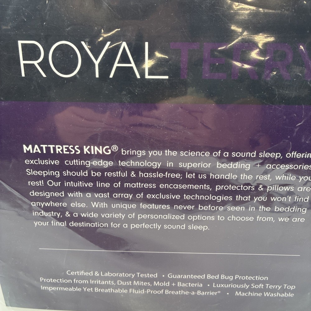 The Queen Size Royal Terry Mattress Protector by Mattress King is a luxurious addition to any bedroom. Made with high-quality materials, this protector adds an extra layer of comfort and protection to your mattress. With its royal terry design and queen size, it is perfect for a master bedroom or guest room. This brand new in bag mattress protector from Mattress King ensures a restful night's sleep with its premium construction and design. Brand new in original packaging! Please check out the pictures and let us know if you have any questions. Thanks for shopping with B & B Treasure Shop!!!