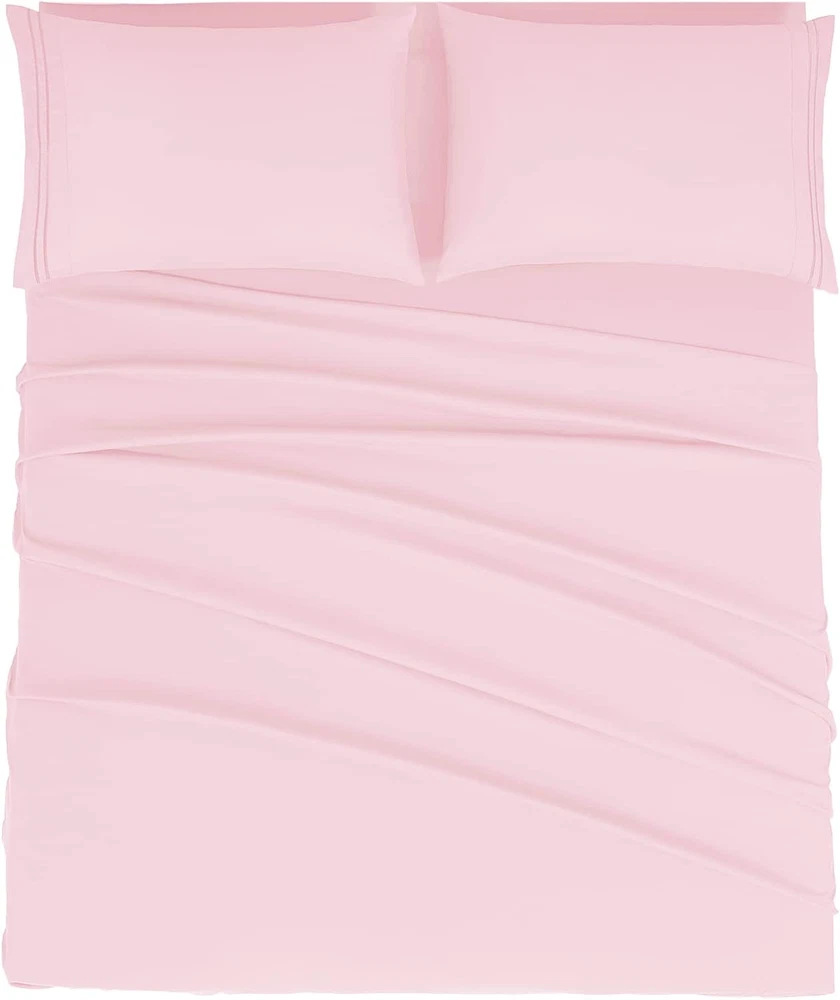 Age Range (Description): Adult UPC: 7445055758798 Pattern: Solid Number of Pieces: 4 Theme: clouds Color: Blush Pink Style: Modern Type: Does not apply Brand: Does not apply Unit Count: 1 Count Sham Quantity: 2 gtin13: 7445055758798 Product Care Instructions: Machine Wash Batteries required: No Pillowcase Quantity: 2 Seasons: All Item dimensions L x W x H: 11.42 x 9.45 x 3.78 inches Item Weight: 3.03 pounds Fabric Type: 100% Polyester Included Components: Fitted Sheet - 1PC, Flat Sheet - 1PC, Pillowcase - 2PC Special Feature: Fade Resistant, Deep Pocket, Stain Resistant, Wrinkle Resistant, Material: Microfiber Closure Type: Pull-On Thread Count: 1800 Product Dimensions: 11.42 x 9.45 x 3.78 inches Size: Does not apply
