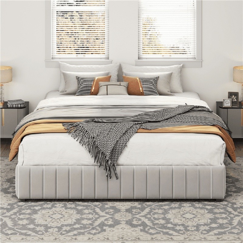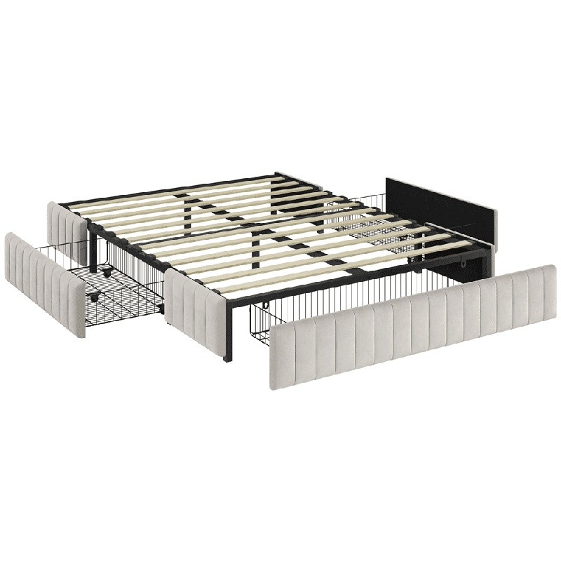 You may also like Metal Platform Bed Frame Twin No Box Spring Easy Assembly Headboard Compatible 118.31 USD 124.54 USD Free shipping 5% off Sturdy Twin XL Bed Frame Metal Foundation Heavy Duty Mattress Support Storage US 112.45 USD 118.37 USD Free shipping 5% off Rattan Wooden Platform Bed Full Size W/ Headboard Slat Support Easy Assembly New 222.17 USD 233.86 USD Free shipping 5% off Metal Platform Full Bed Vintage Headboard Sturdy Adult Steel Frame Storage New 95.26 USD 100.27 USD Free shipping 5% off Faux Leather Queen Platform Bed W/ Padded Headboard Box Spring Required Assembly 120.99 USD 127.36 USD Free shipping 5% off Twin over Twin Junior Bunk Bed Metal Frame Low Profile W/ Guardrails Ladder New 146.07 USD 153.76 USD Free shipping 5% off Durable Upholstered Platform Bed Frame Low Profile Slat Support Heavy Duty New 185.27 USD 195.02 USD Free shipping 5% off Kids Twin Metal Bed Frame Bowknot Headboard Easy Assembly Under Bed Storage New 59.47 USD 62.6 USD Free shipping 5% off Twin Metal Bed Frame 7 Inch Easy Assembly Headboard Compatible Recessed Legs New 55.38 USD 58.3 USD Free shipping 5% off Heavy Duty Steel Slat Bed Frame Twin Storage No Box Spring Easy Assemble New 50.35 USD 53.0 USD Free shipping 5% off Upholstered Queen Bed W/ Nailhead Trim Solid Wood Frame Assembly Required New 101.14 USD 106.46 USD Free shipping 5% off Heavy Duty 4" Thick Box Spring Full Bed Metal Foundation Easy Assembly Non Slip 139.47 USD Free shipping This upholstered bed frame with drawers would be right at home in a five-star hotel – and in your bedroom, of course. The no-fixed headboard design can customize your desirable backdrop according to your style, and the frame is crafted from sturdy metal and wood slats. Available in your choice of neutral hues, this bed just might inspire you to redo the entire room around it. We love how the drawer-storage design provides a large amount of space as you organize or hide daily essentials before falling asleep. More importantly, this bed doesn't require a box spring, so it's ready to support your mattress right away. Suitable for Adult. Simple & Modern: Low-profile frame opens up any room. Modern design with a simple color fits various types of home decor. The striped pattern of the side panel combined upholstered bed frame enriches your room with a classic and chic look Without Fixed Headboard: Without fixed headboard design, this upholstered bed frame is easily blended with room decor. That means you can customize your desirable backdrop according to your style Firm Support System: The frame is made from engineered wood and sits on metal legs, designed to support a mattress of your choice, supporting a maximum weight capacity of 800 lb Cushion-padded Side Panel: Thanks to the thick and soft foam-cushioned side panel with a striped pattern, your bedrooms improve a sense of soft-to-touch feeling and a fresh look, upgrading to the next level Easy Assembly Required: With the help of step-by-step assembly instructions and the included tools, two adults can finish the setup within an hour Specifications: Color: Beige; Slat Quantity: 12; Materials: Plywood, MDF, Metal, Foam, Velvet Fabric; Assembled Dimensions: 82 ″ L × 63. 5 ″ W × 11. 5 ″ H; Maximum Weight Capacity: Total: 800 lb; Big Drawer: 33 lb; Small Drawer: 22 lb Bathroom Sink Hair Catcher Stainless Steel Drain Protector Universal Fit 1 Pack 18.75 USD 19.74 USD Free shipping 5% off Coconut Clumping Cat Litter 2 Pack All Natural Lightweight Odor Control 8.5 lbs 44.97 USD 47.34 USD Free shipping 5% off 4.00-6 Wheelbarrow Tire All-Terrain Utility Non-Radial Load A Durable Traction 25.12 USD 26.44 USD Free shipping 5% off Hanging Closet Organizer W/ 6 Shelves & 3 Side Pockets Adult Clothes Storage New 27.29 USD 28.73 USD Free shipping 5% off Self Adhesive Shelf Liner Gridded Back Easy Peel No Residue 2 Pack 30 SQ FT New 13.15 USD 13.84 USD Free shipping 5% off 8in Wheel Replacement Walk-Behind Mowers Troy-Bilt Snapper Yard Machine Murray 29.3 USD 30.84 USD Free shipping 5% off Bermudagrass Grass Seed Mix Full Sun Fast Establishment Drought Tolerant 8.75 lb 48.49 USD 51.04 USD Free shipping 5% off Extreme Odor Control Small Animal Bedding 99% Dust Free Absorbent Nesting New 17.38 USD 18.29 USD Free shipping 5% off Programmable 1 Zone Water Timer Automatic Garden Irrigation Flow Control System 44.37 USD 46.71 USD Free shipping 5% off Allergen Defense HVAC Air Filter 800 MPR pleated 3-in-1 technology cleaner air 17.38 USD 18.29 USD Free shipping 5% off Dipped Dog Biscuits Peanut Butter Flavor Crunchy Treats All Sizes 32oz 2Count 25.09 USD 26.41 USD Free shipping 5% off Waterproof Mattress Pad 200 Thread Count Twin Cotton Hypoallergenic Protector US 27.45 USD 28.89 USD Free shipping 5% off