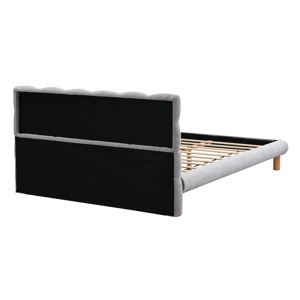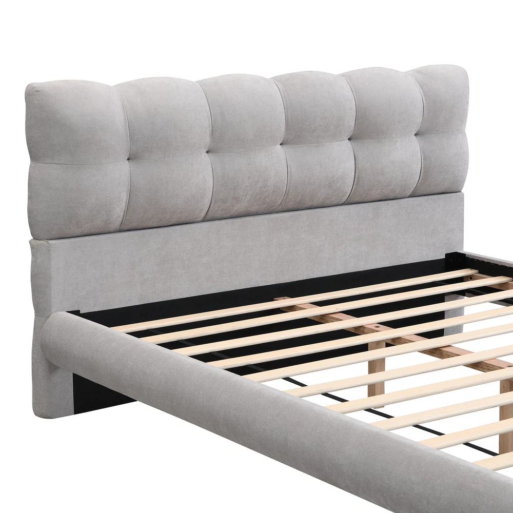 Queen Size Upholstered Platform Bed Frame with Cookie-Shaped Headboard, Easy Ass