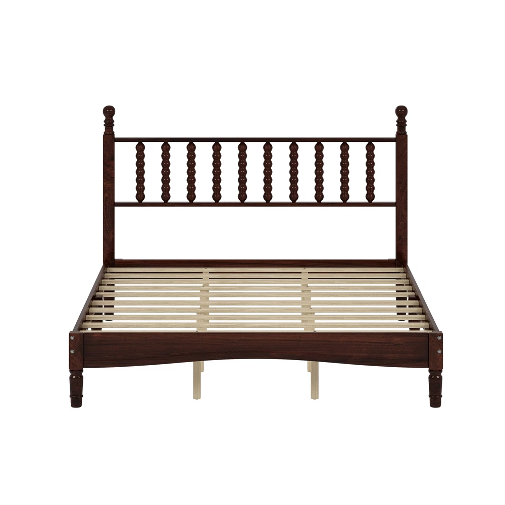 Queen Size Wood Platform Bed with Gourd Shaped Headboard,Retro Style Platform Be
